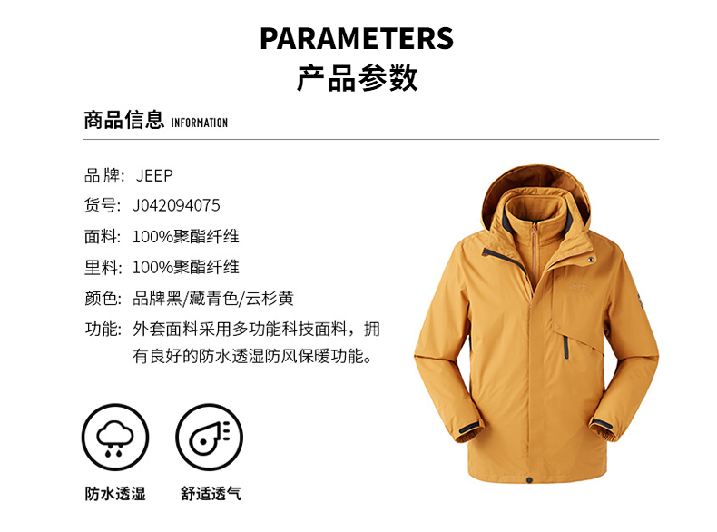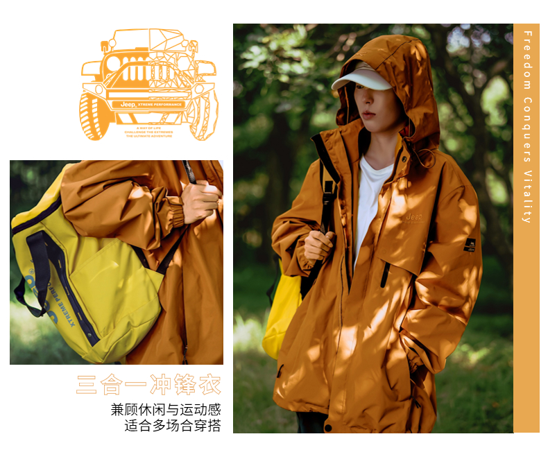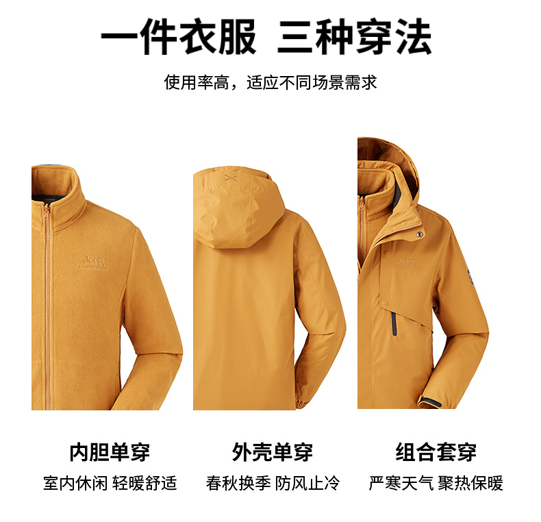 Jeep, желтая дорожная водонепроницаемая ветрозащитная альпинистская куртка, «три в одном»