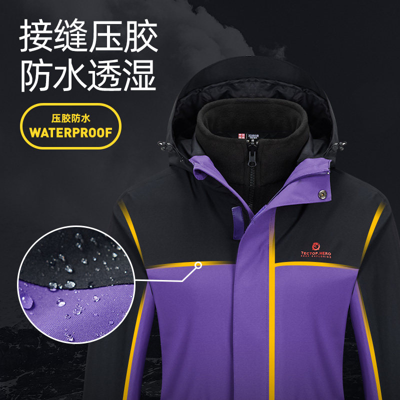 Дорожный демисезонный альпинистский бархатный ветрозащитный водонепроницаемый комплект подходит для мужчин и женщин для влюбленных, удерживающая тепло куртка, «три в одном»