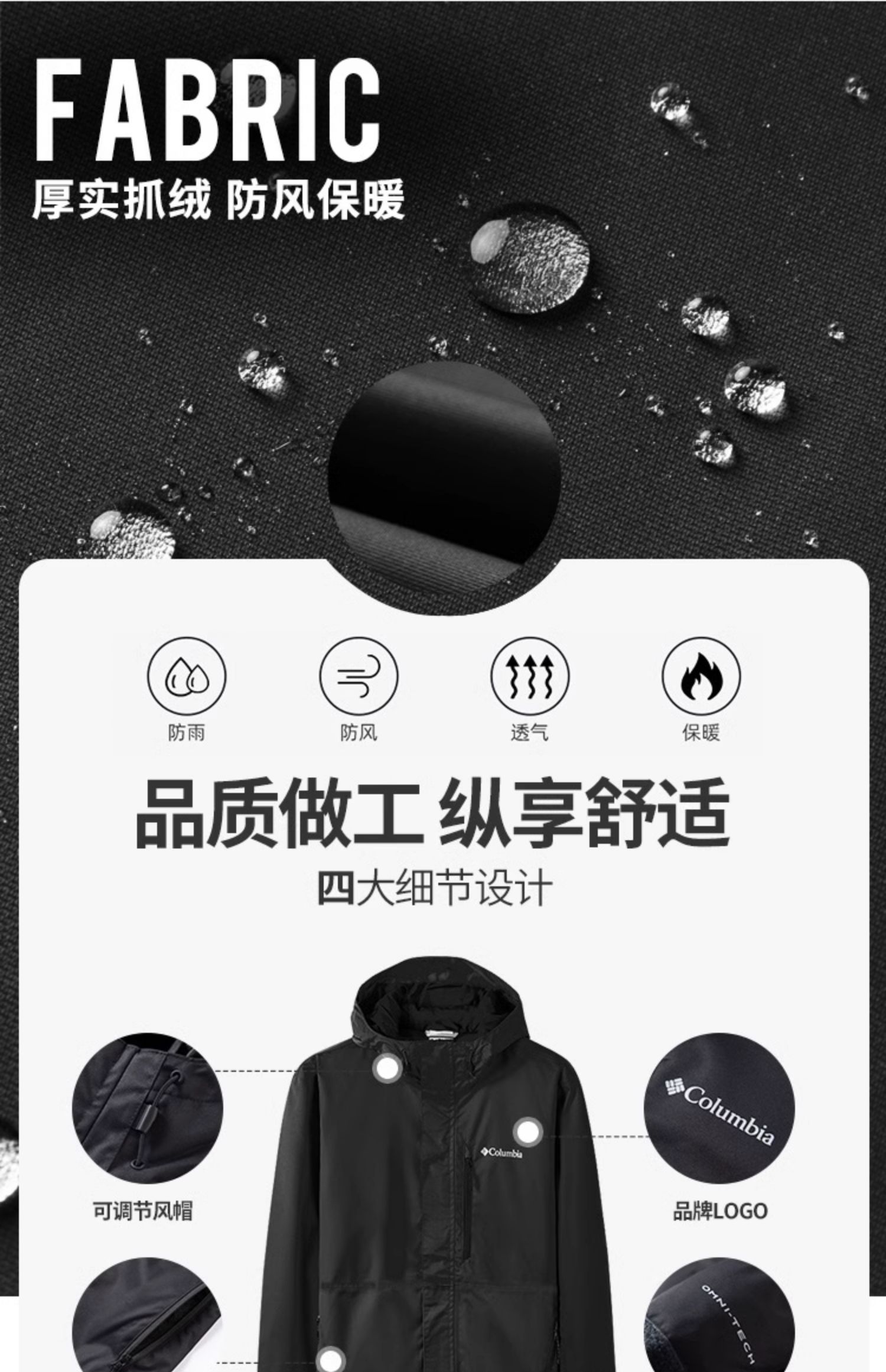 Columbia, дорожная тонкая летняя ветрозащитная водонепроницаемая куртка