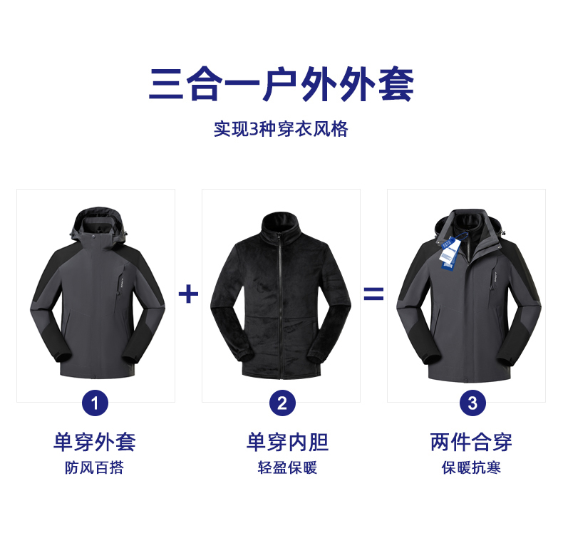 Осенняя ветрозащитная водонепроницаемая дорожная куртка подходит для мужчин и женщин, «три в одном»