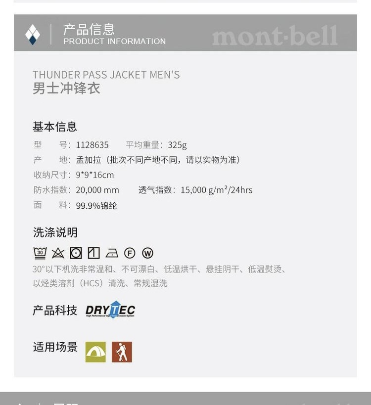 Складывание Японии Прямой почтовой почты Монтбелл Громовой проход Заряда Мужской водонепроницаемый альпинизм 6 Цвет 1128635