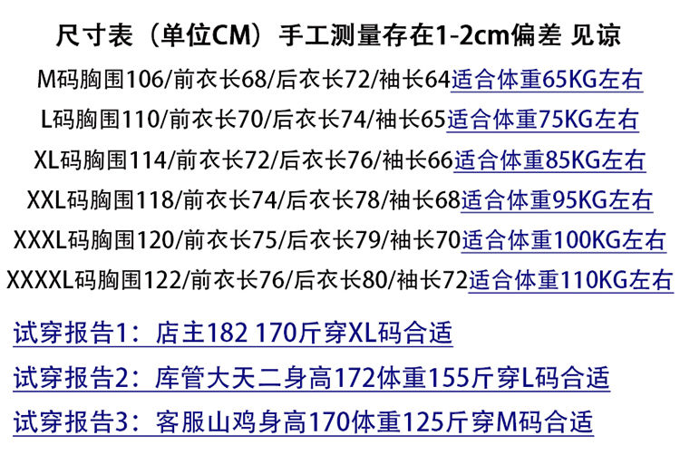 | Размер: | М (120-134 кот), L (135-150 кот, XL (151-175 Catties), 2xl (176-195 Catties), 3xl (196-205 Catties) |