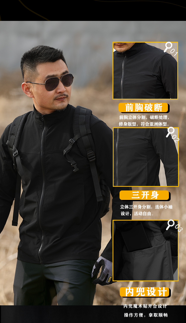Мужская тактическая осенняя легкая и тонкая водонепроницаемая дышащая дорожная эластичная куртка, свободный крой