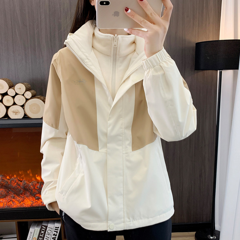 Куртка, демисезонный ветрозащитный водонепроницаемый дышащий дорожный комплект для скалозалания, женский стиль, «три в одном»