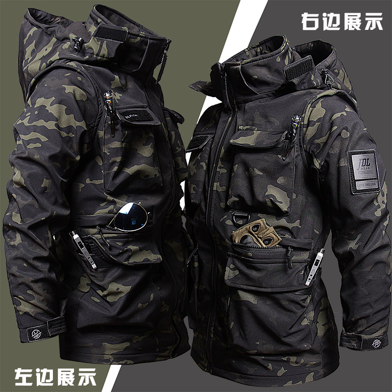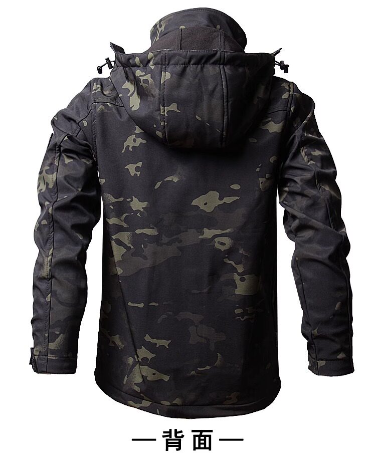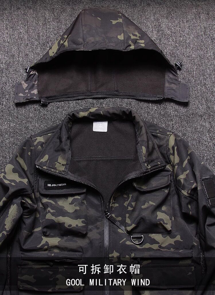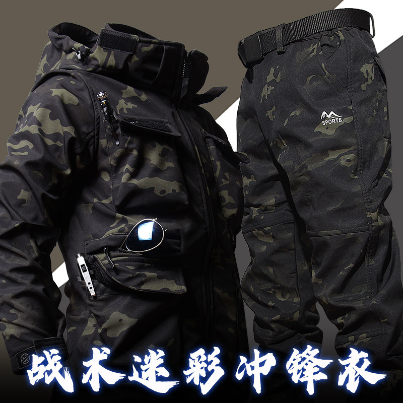 Куртка, ветрозащитный дорожный флисовый водонепроницаемый зимний камуфляжный короткий комплект