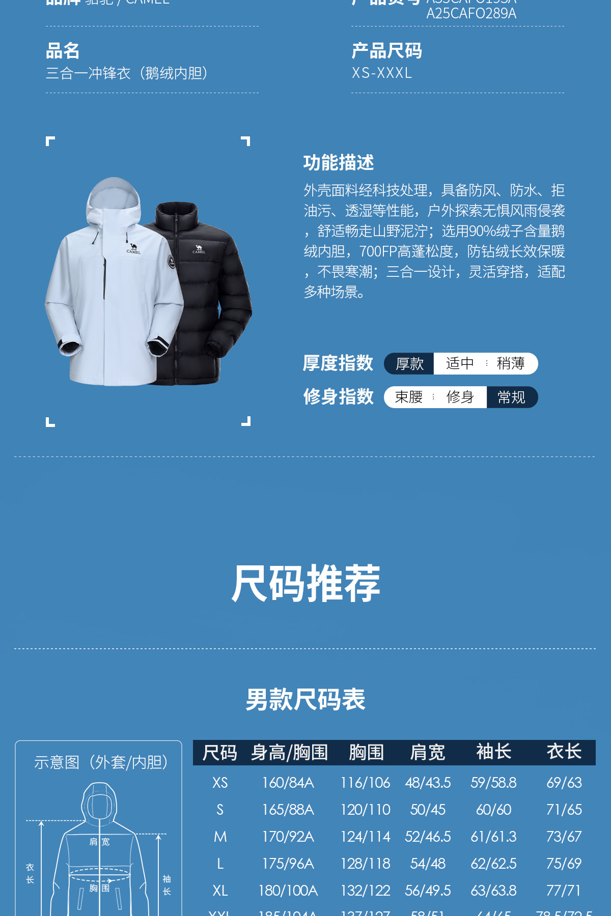 Куртка, дорожный водонепроницаемый мужской пуховик, «три в одном»