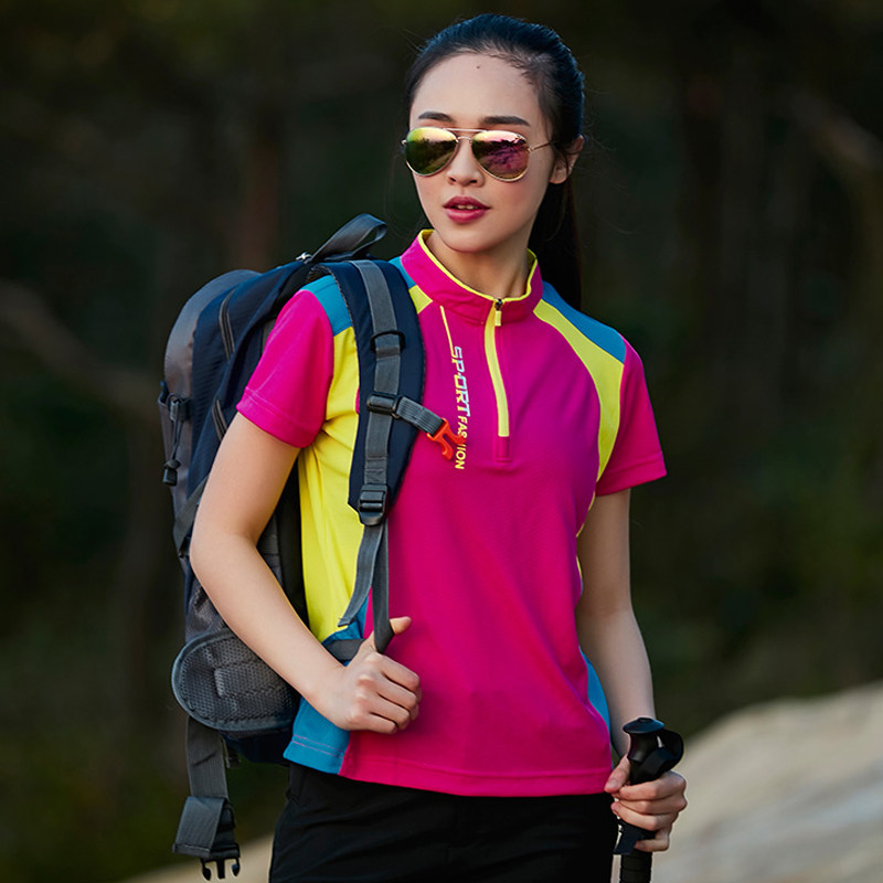 Спортивная быстросохнущая летняя эластичная дышащая дорожная футболка с молнией, короткий рукав, для бега