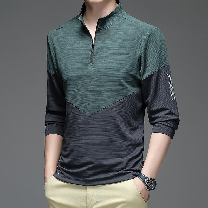 Мужской дорожный осенний демисезонный тонкий цветной спортивный быстросохнущий лонгслив с молнией, для бега