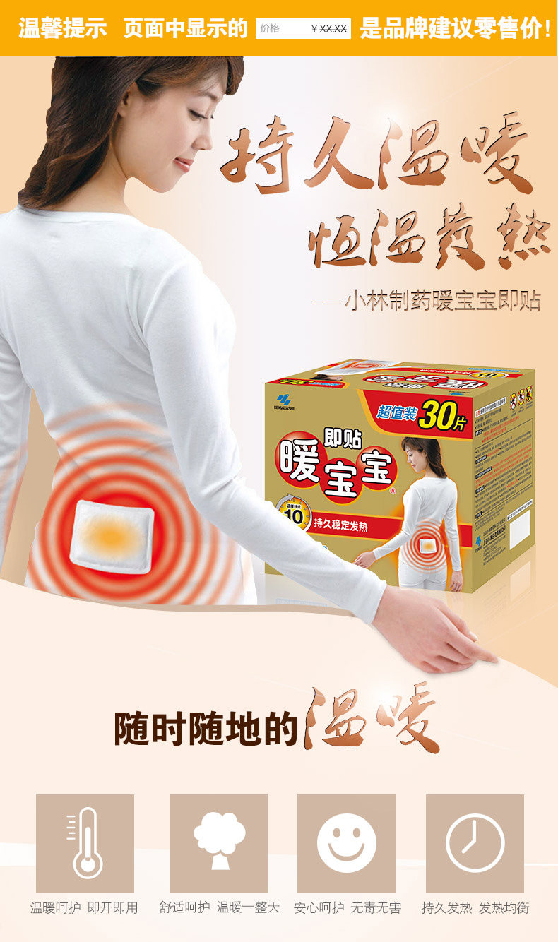 Xiaolin Rihua теплое детское отопление 30 таблеток подарочных коробок, чтобы сохранить теплые наклейки, теплые наклейки, теплые, талию, спину, плечо, рука, рука и ноги наклейки
