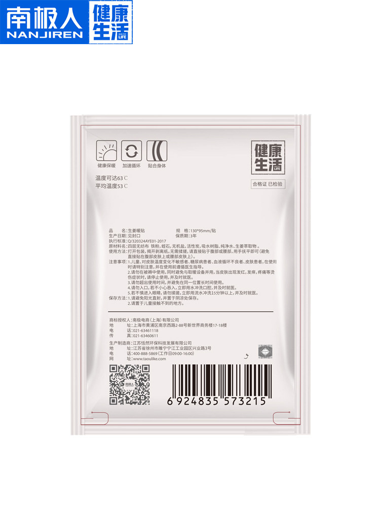 南极人 Имбирная теплая наклейка спонтанная тепловая наклейка имбиря Женские наклейки с теплыми дворцами, чтобы сохранить холодные и холодные подлинные сырые имбирные тепловые наклейки