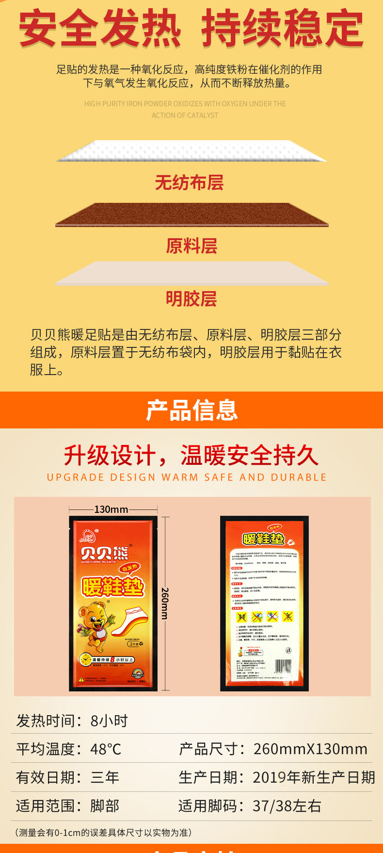 贝贝熊 Детские согревающие наклейки, стельки, детский универсальный патч для ног подходит для мужчин и женщин