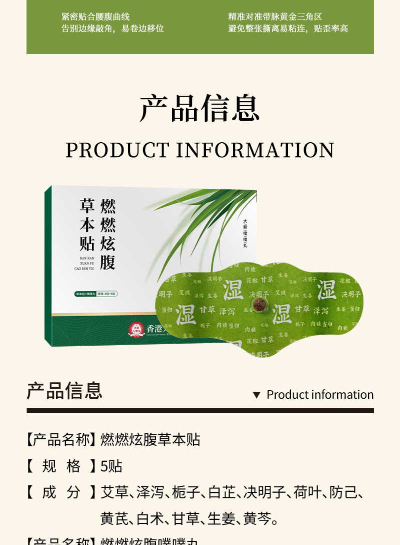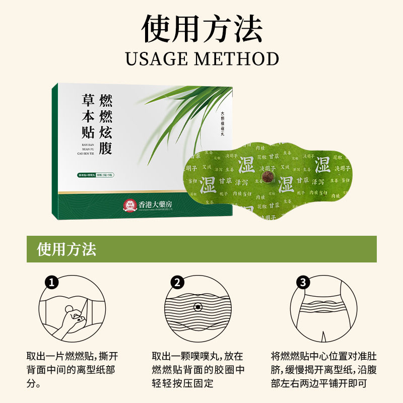 Пластырь для прижигания акупунктурных точек, чтобы показать живот, ожоги в аптеке Гонконга, чтобы показать живот, травяной пластырь для пупка, световой пластырь из полыни на животе