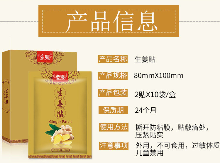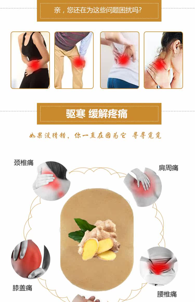 Имбирные наклейки, чтобы облегчить стабилизационные суставы суставов коленного сустава и поясничный позвоночник, боль, шейный позвоночник, тепло приводятся холодным и теплым подлинным подлинным