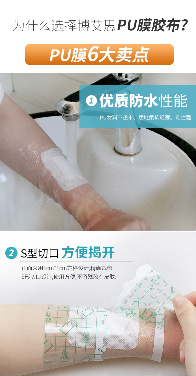 Водостойкая лента, полиуретановый дышащий пластырь из нетканого материала