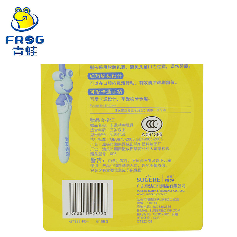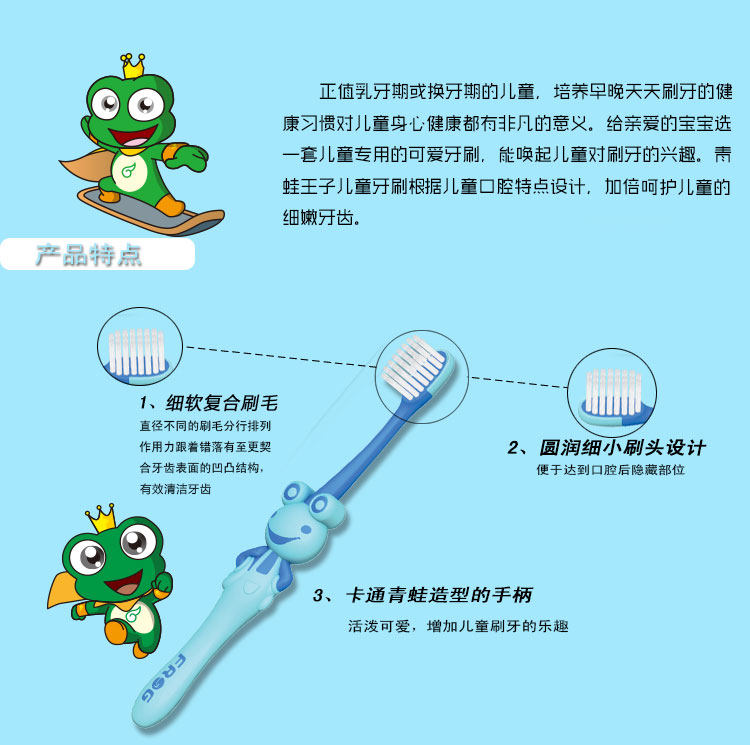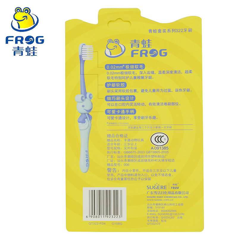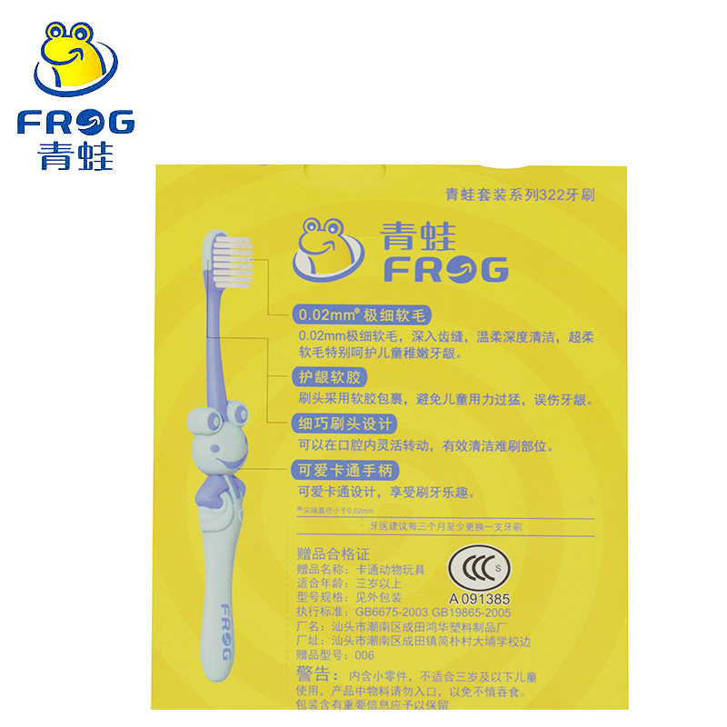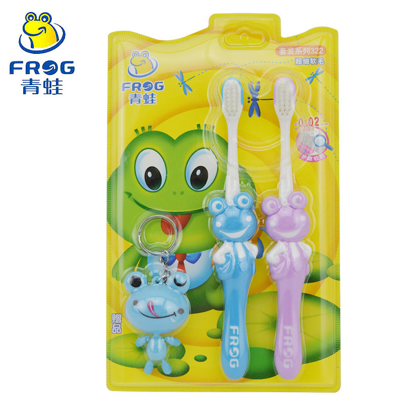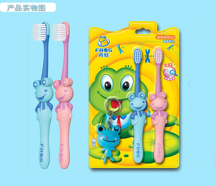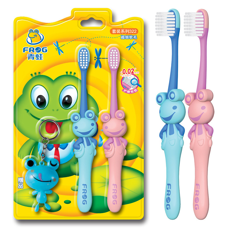 Лягушка/лягушка Зубная щетка с мягкими щеточками двойные ветви и защита десны K322