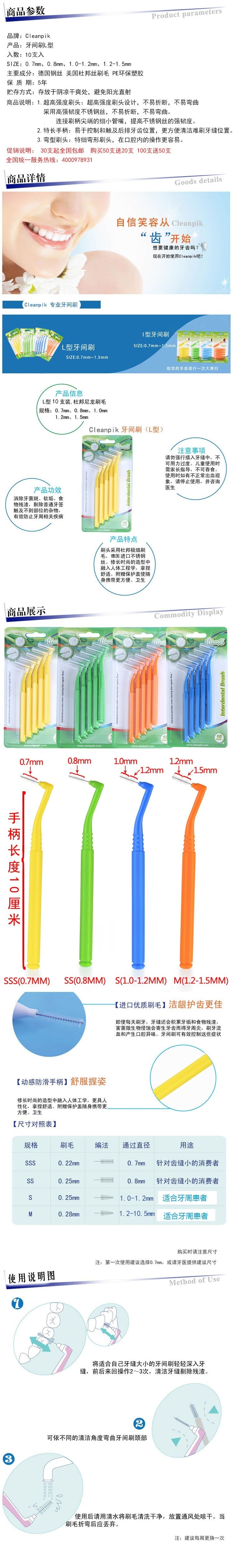 Cleanpik Зубной щеточный номер чистка ортодонтическая зубная щетка L-образная 0,7-1,5 мм корейская из нержавеющая сталь.