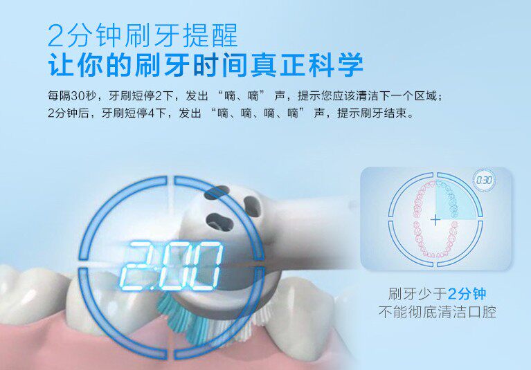 Проведите как минимум две минуты каждый раз.Независимо от использования обычных ручных зубных щетков или электрических зубных щетков, каждая часть полости рта должна чистить не менее 30 секунд (в верхнем правом и нижнем правом, верхнем и нижнем левом слевах).
