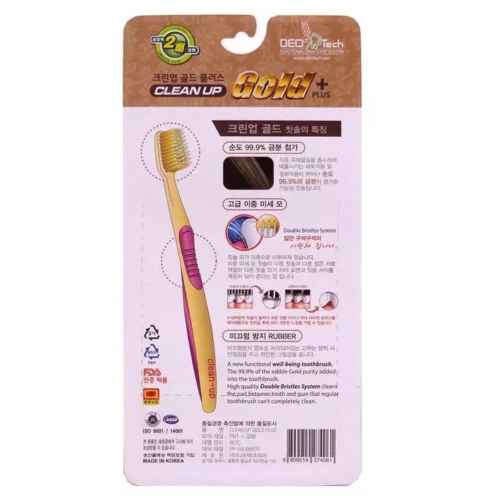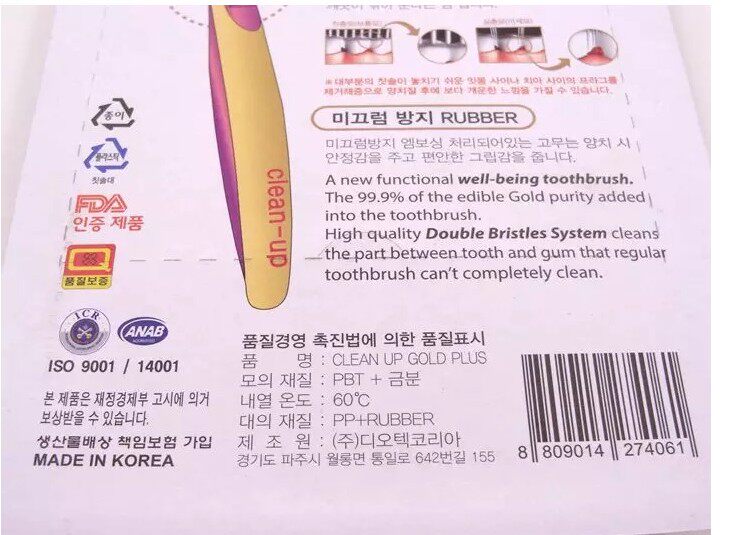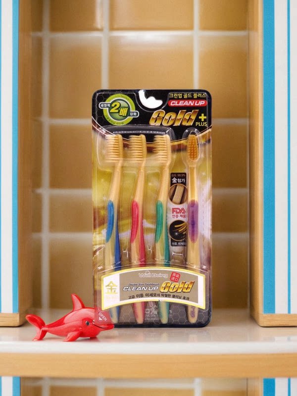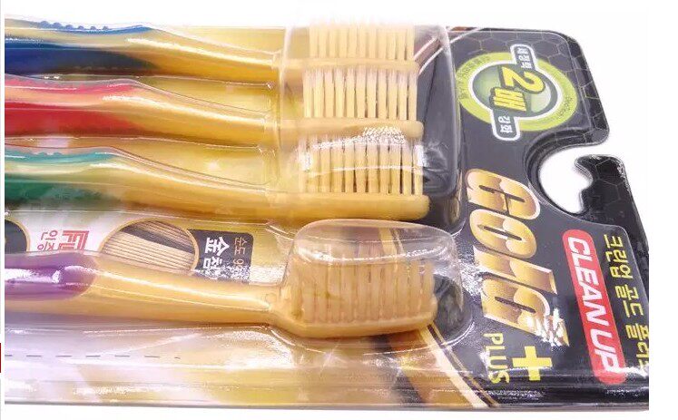 Южная Корея Золотые нано -нано -мягкие волосы Золотая зубная щетка Чистка 4 раза дома 2x антибактериальная десна тонкая плотность зубная щетка