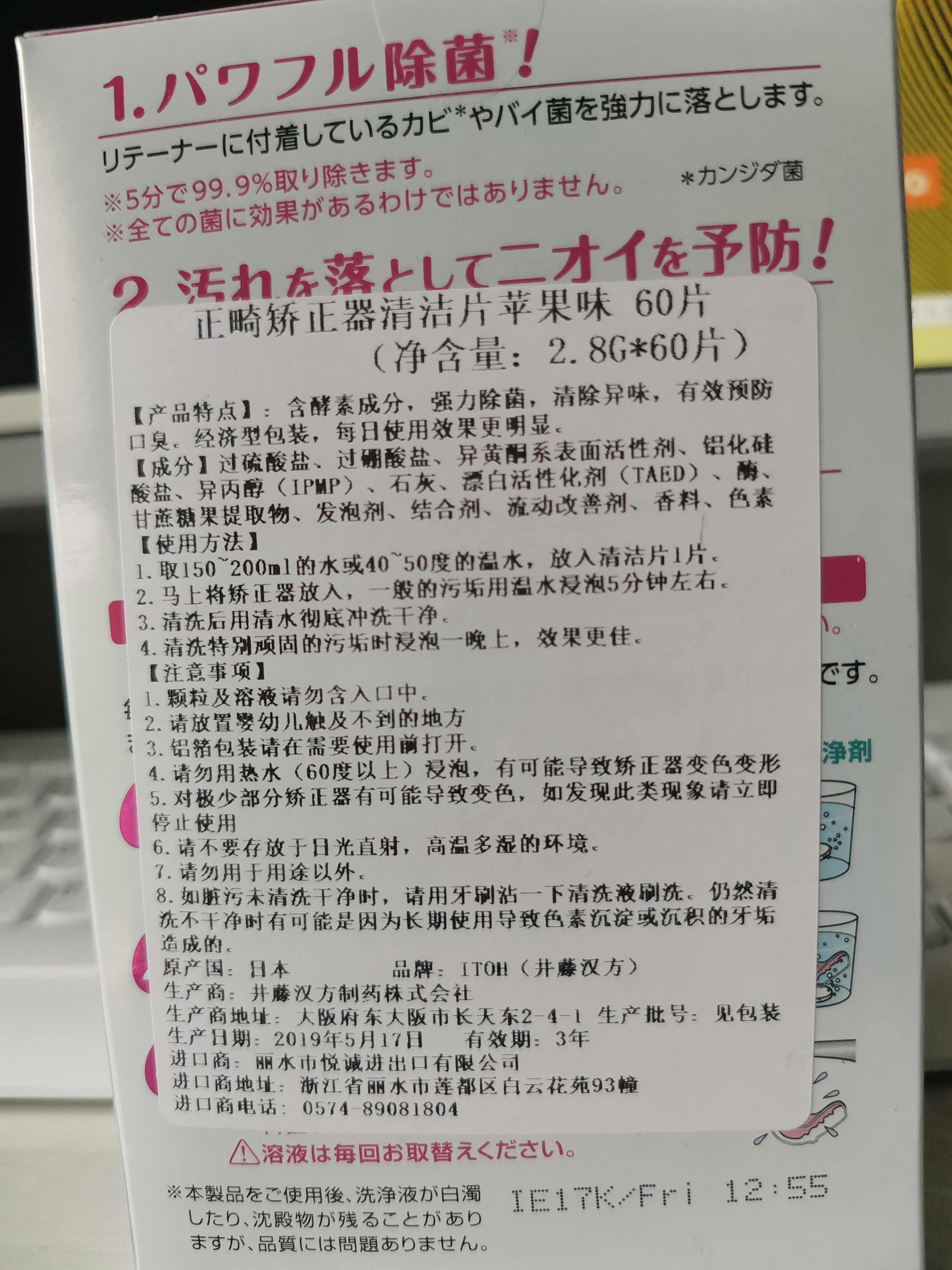 Японские импортные ортодонтические фиксаторы чистящие таблетки таблетки jinshimei era era era agant Agent 60 таблетки яблочные ароматы