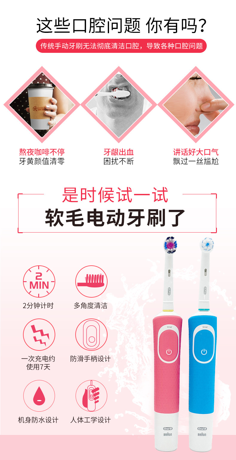 Германия боран оралб/улаби б электрическая зубная щетка мягкие волосы Мужчины и женщины взрослые D100 Пара звуковая волна вращение