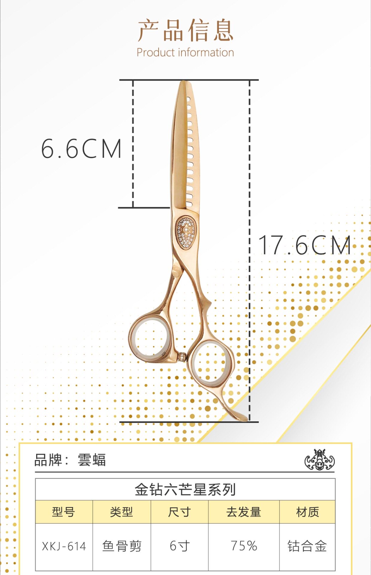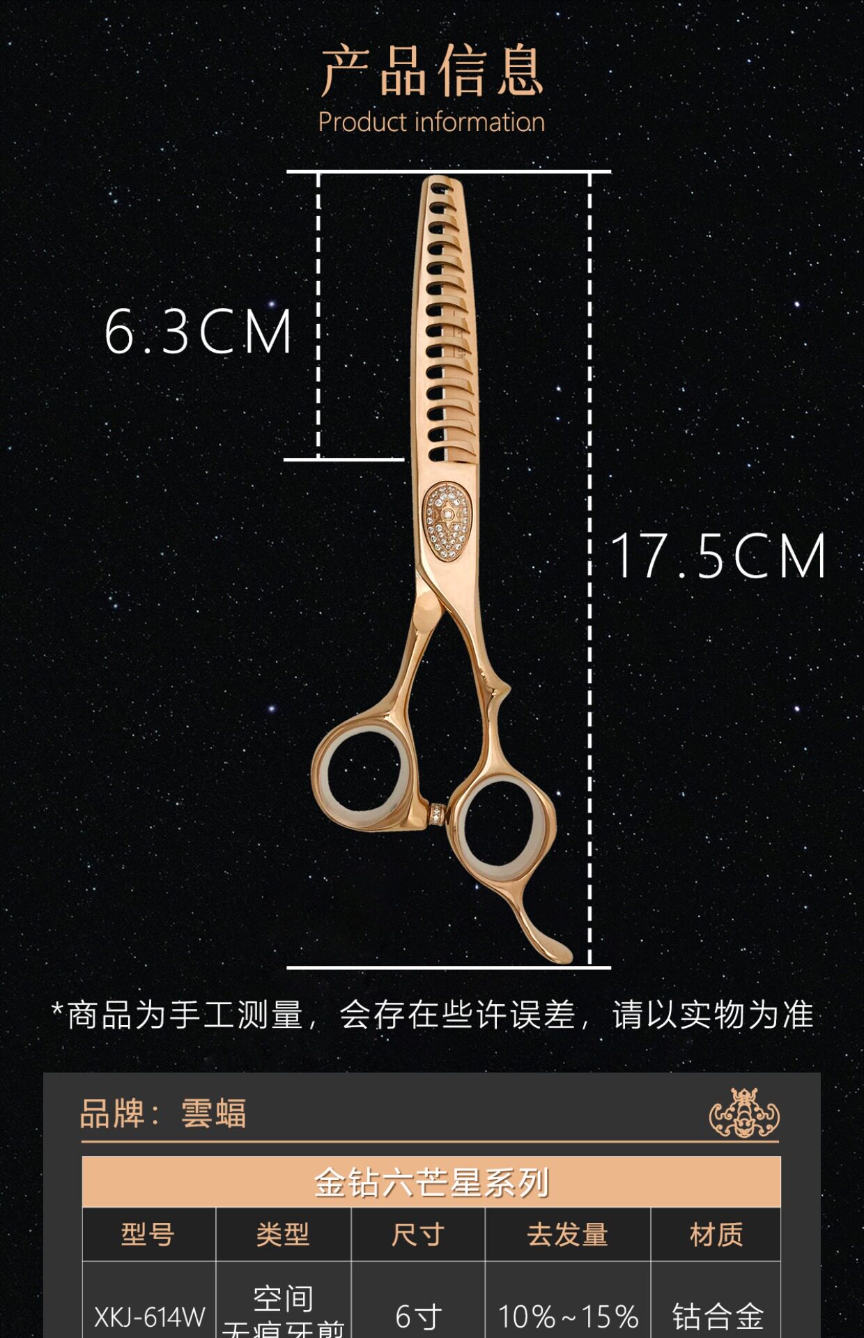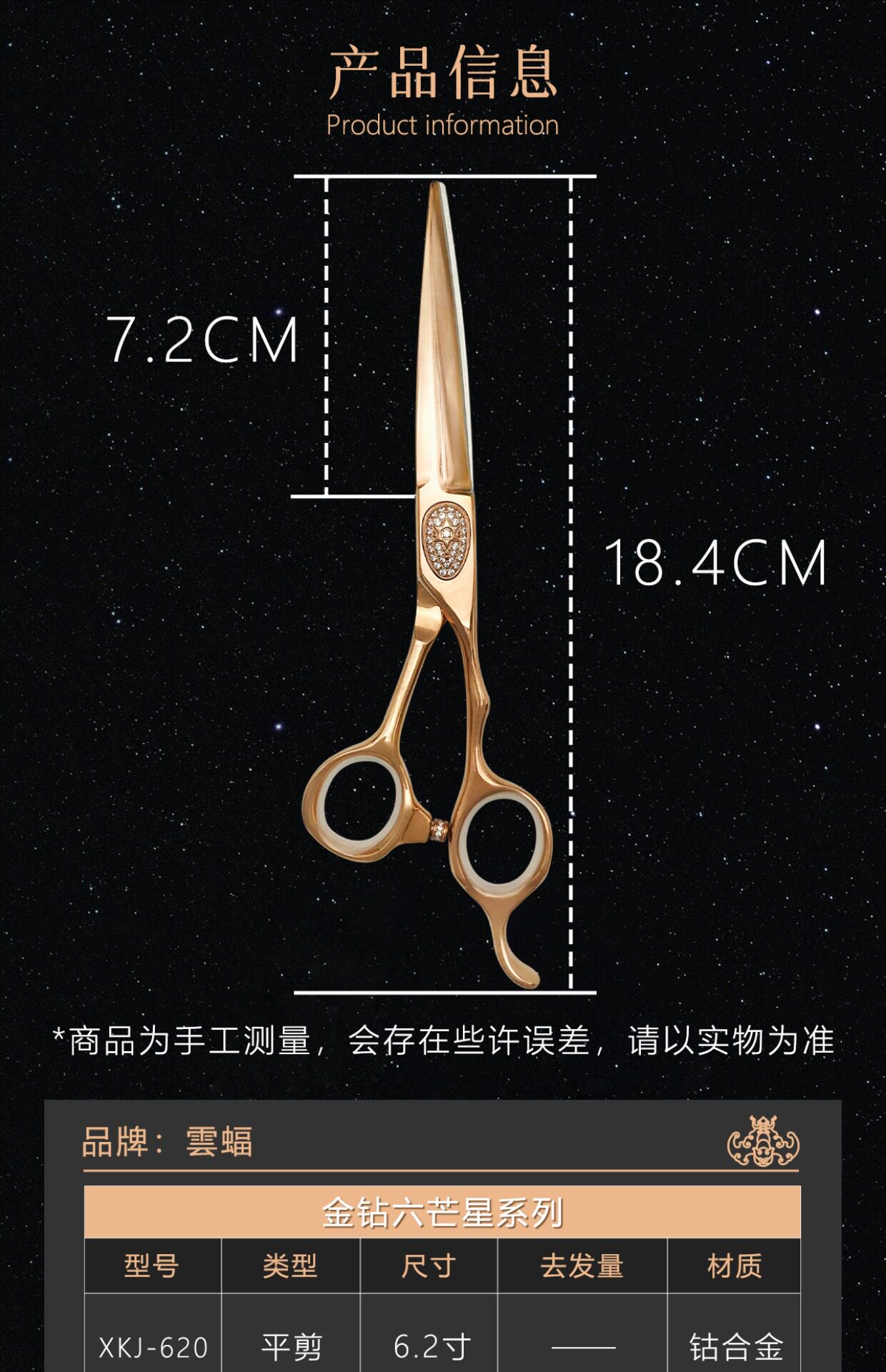 Yunbat Golden Diamond Hexagram Hair Ncissors Rose Gold