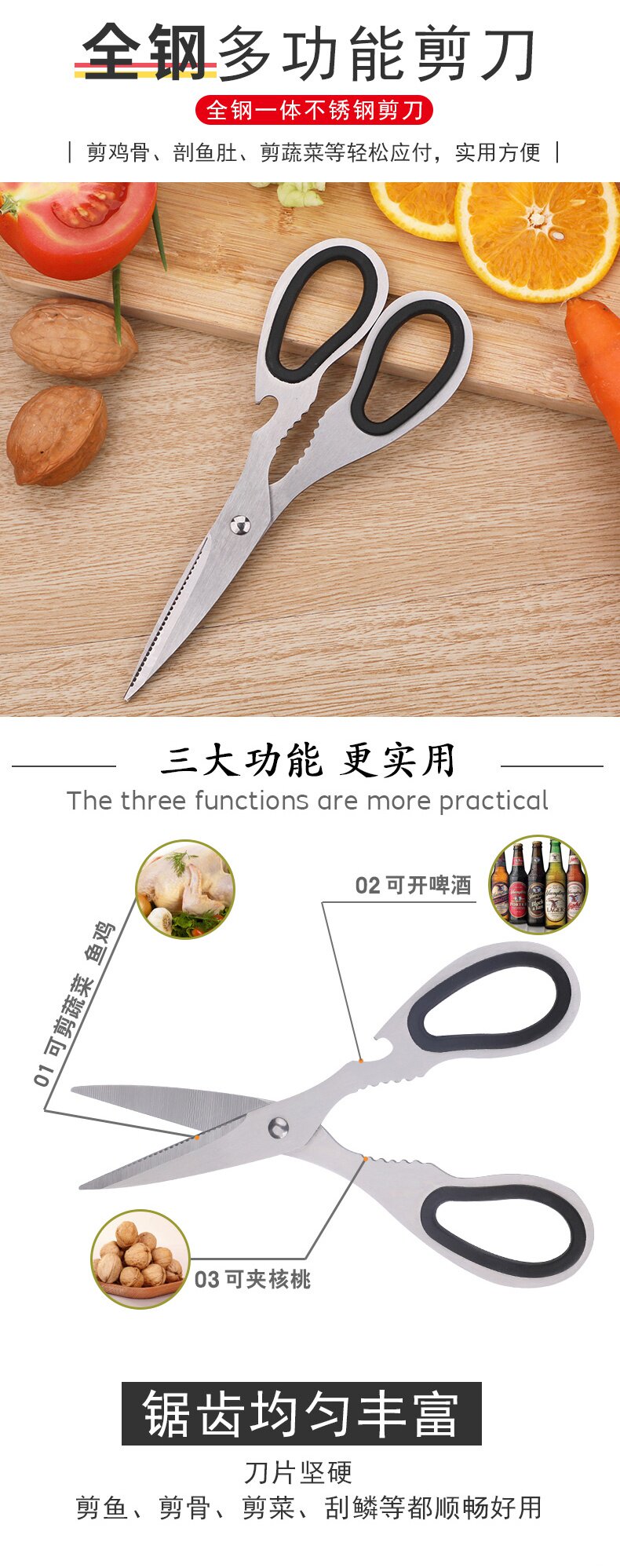Универсальные пищевые ножницы для многоразового использования из нержавеющей стали, открывашка