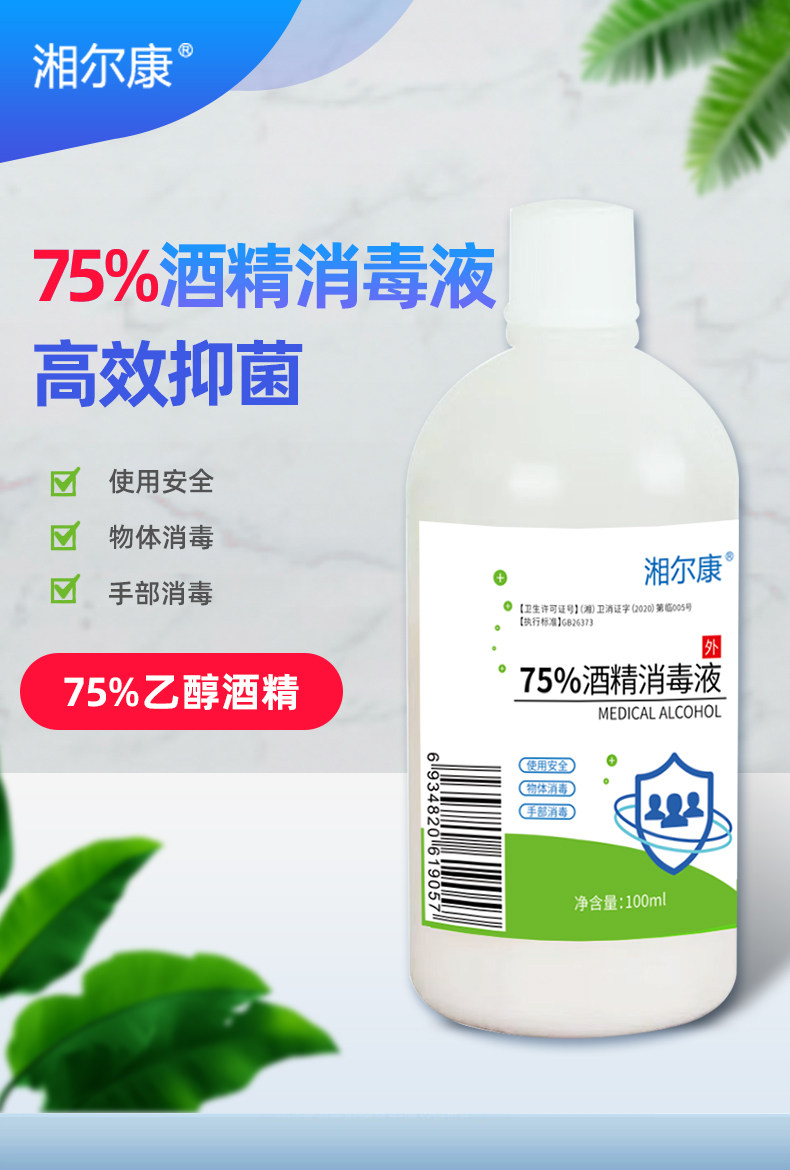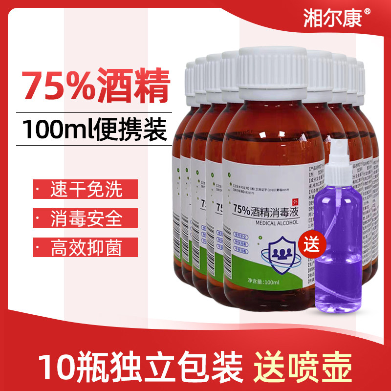 湘尔康 75 градусов, этанол, спирт, дезинфицирующее средство, стерилизация, бесплатная ручная стирка, портативное домашнее домашнее средство, 100 мл/бутылка, 10 бутылок