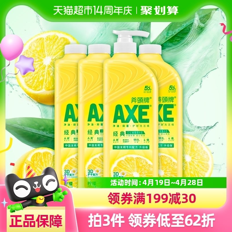 AXE/斧头牌 Моющее средство для мытья рук «Лимон» 1,18 кг*4, витамин Е, уход за моющимися фруктами и овощами, домашняя упаковка