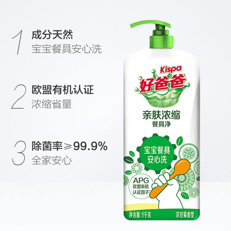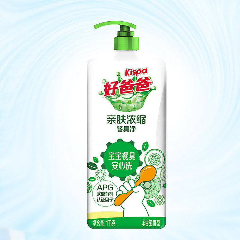 好爸爸 Безопасная для кожи концентрированная посуда, сетка 1 кг/бутылка, подходит для младенцев и детей младшего возраста, концентрированная и легко моется, степень стерилизации составляет 99,9%.