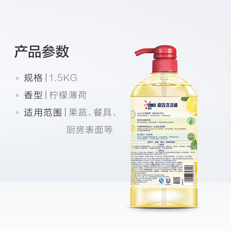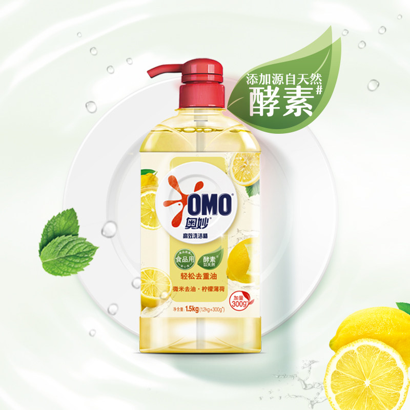 奥妙 Стерилизующее моющее средство «Лимон и мята» 1,5 кг для мытья посуды, фруктов и овощей, не повреждая руки, семейное упаковочное сырье для домашнего использования.