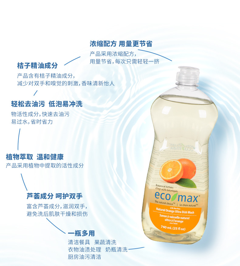 Ecomax Cool Poem Импортированное концентрированное моющее средство апельсиновое/чайное ароматное фрукты и овощные мытья посуды с низкой пеной/растением