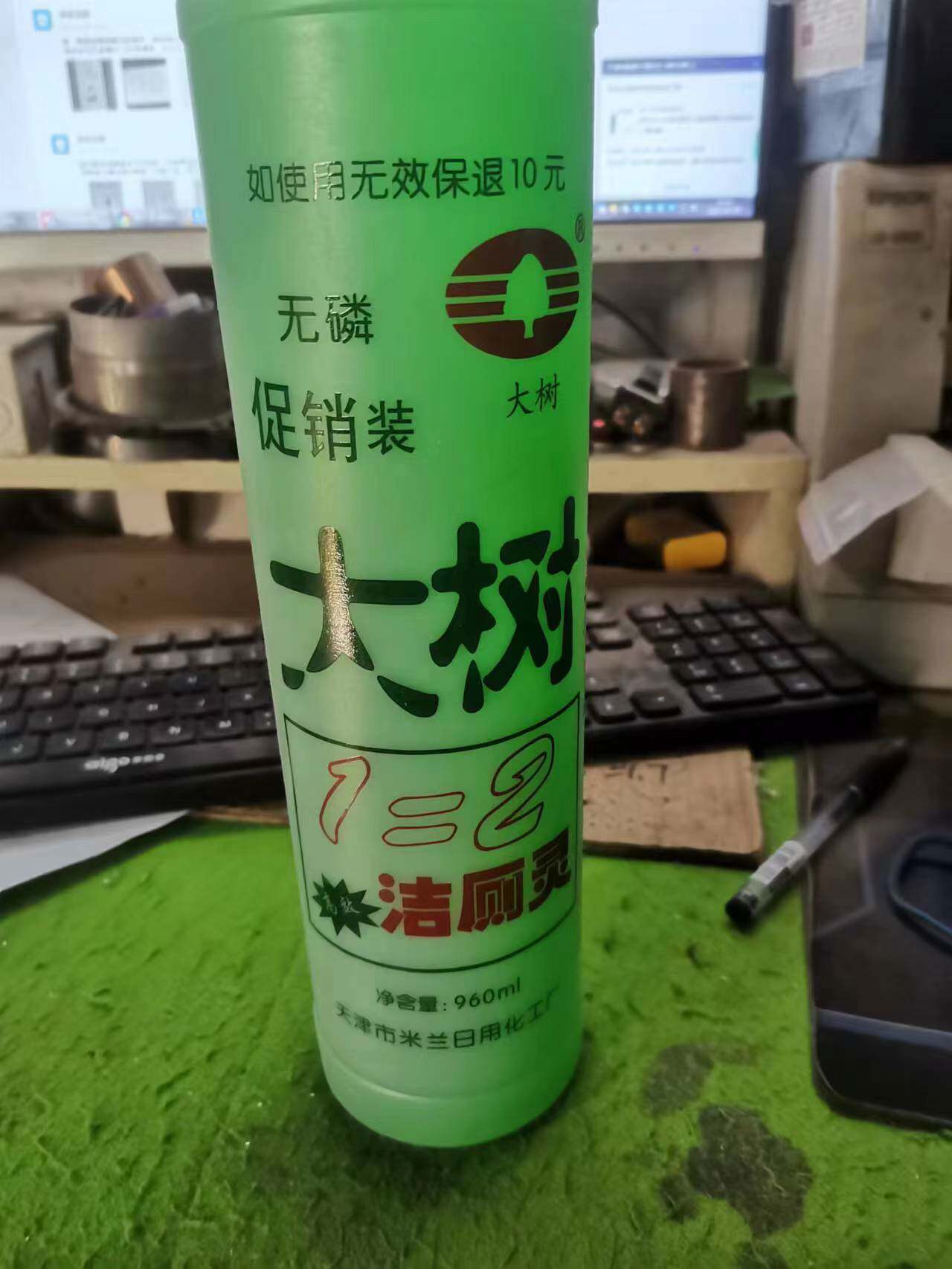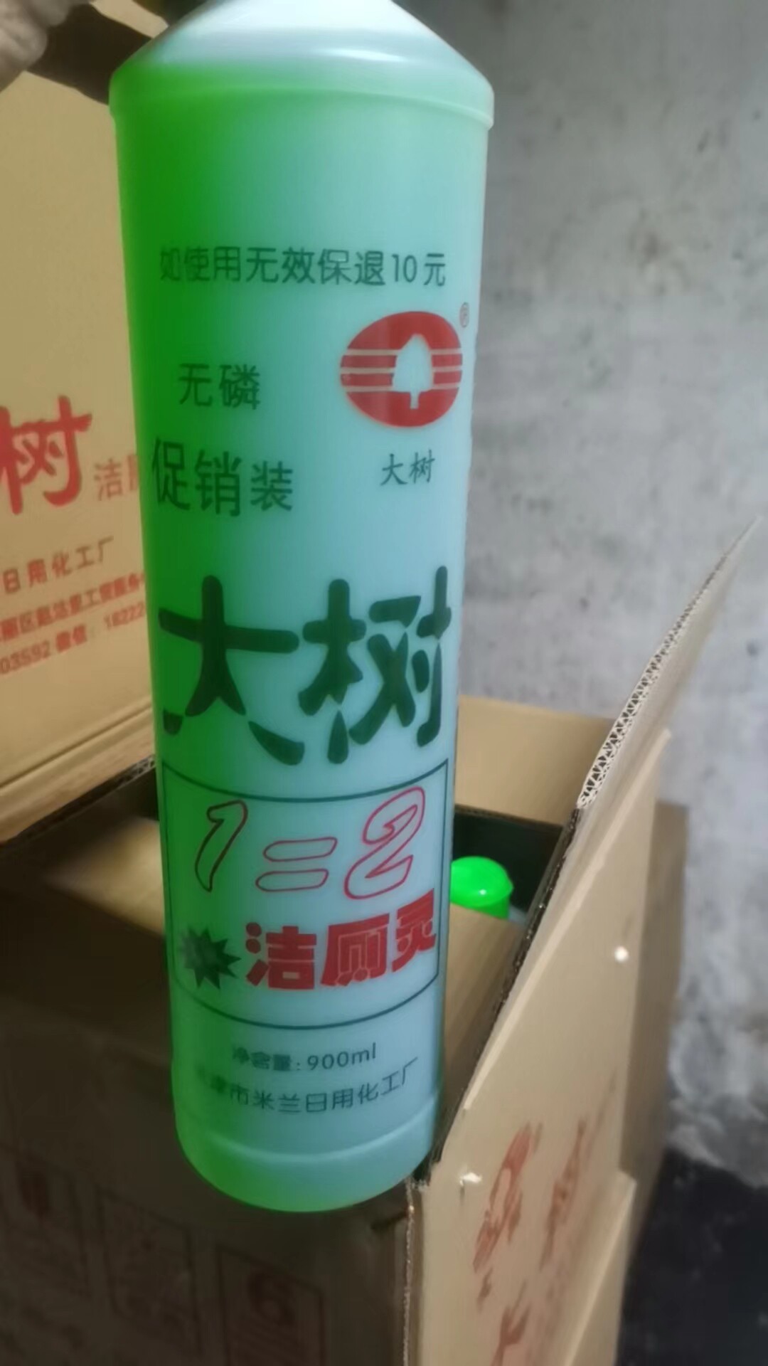 Подлинное крупное дерево с очищающей туалетной жидкостью да
