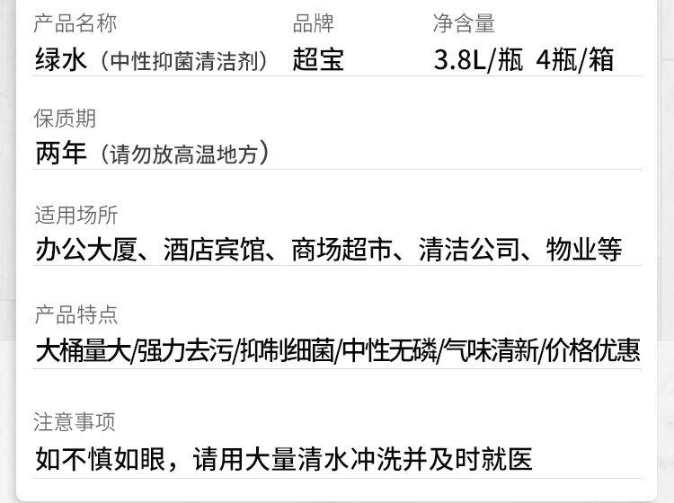 超宝 Зеленая вода нейтральная антибактериальная очистка всесторонняя чистящая среда для общественных мест для очистки пола и удаления моющих средств
