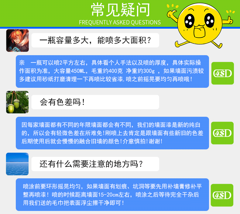 Примечание. Перед распылением используйте газеты, такие как окружающий пол или мебель и электрические приборы, чтобы сделать меры по защите. После того, как распыление полностью распыляется, распыляющая краска разбросана по окружающим предметам, чтобы вовремя очистить его полотенцем!