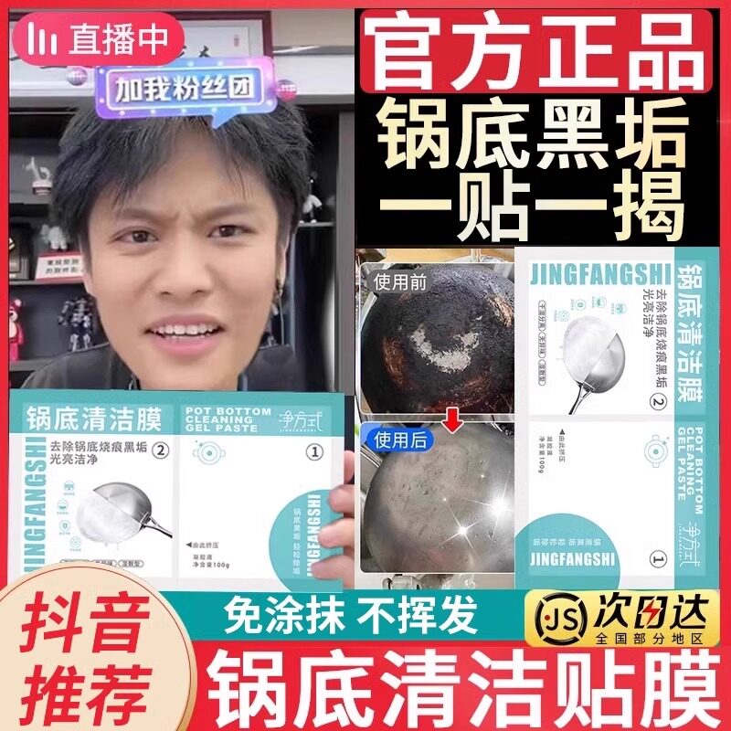 Очистите дно сковороды, намочите пленку влажную компресс, протрите дно горшка, нижняя часть артефакта черного пятна без нанесения бумаги без пакетов без волны поверхности