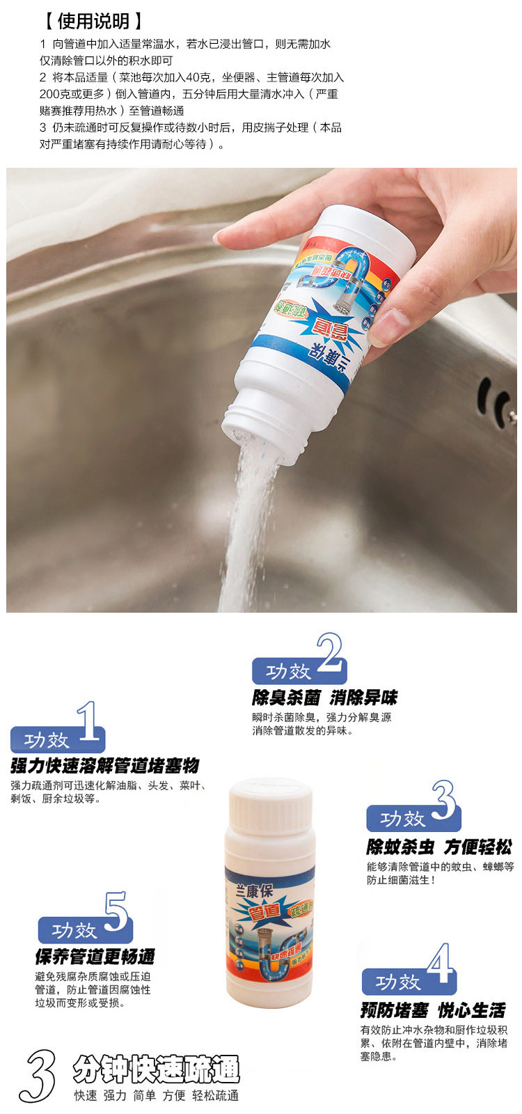 Lankangbao Sond Porpline Drecedging Agent Agent Agent Sewent канализационная канализационная канализация кухня кухня Dregerging Deodorant, чтобы заблокировать порошок канала