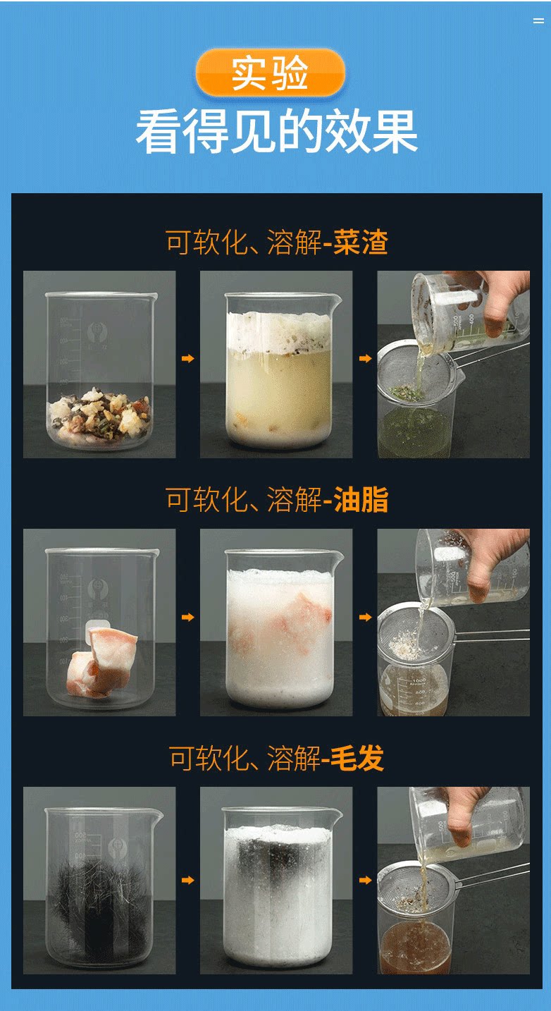 Трубопроводной дновичок порошок, сильно растворенный в туалетном дезодоризирующем артефактом туалете, туалет, кухня для дренажа, загрязнение воды заблокировано