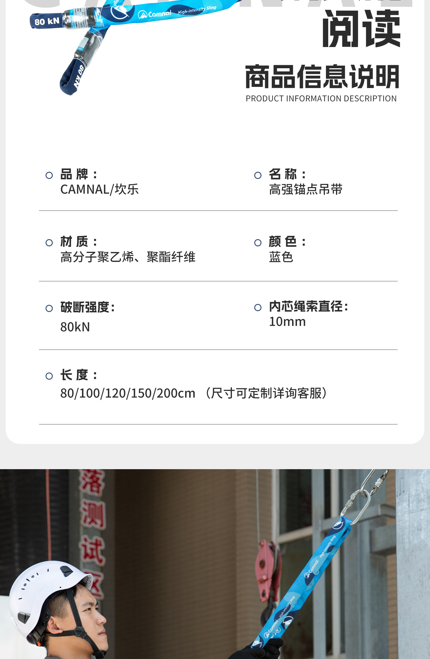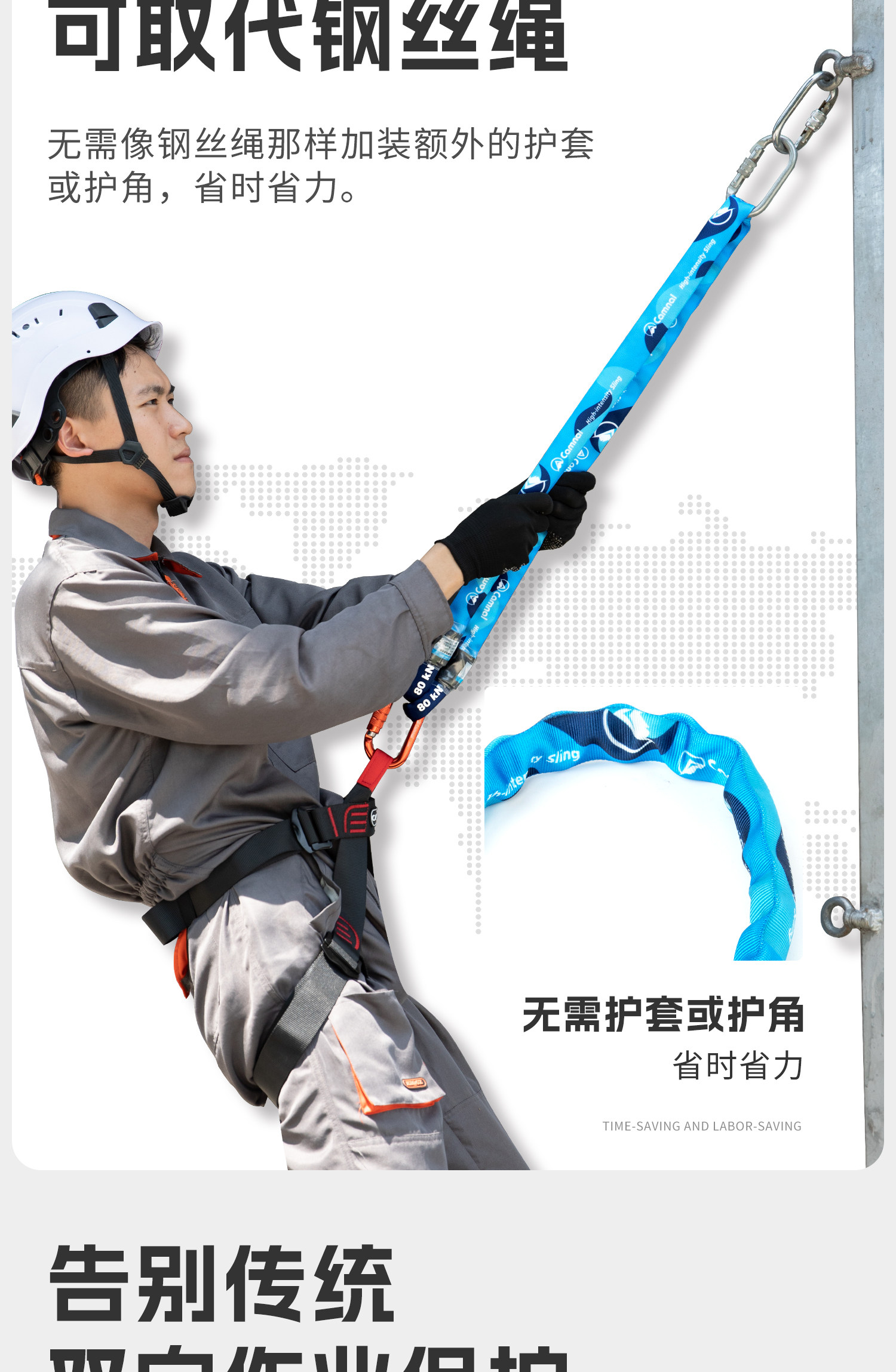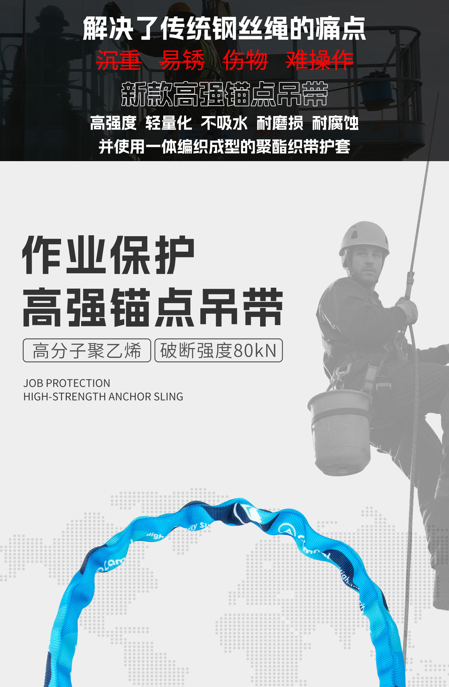 坎乐 Точка крепления с высокопрочным 80-кН страховочным тросом, прочным спасательным ремнем, промышленным воздушным рабочим тросом, плоским ремнем