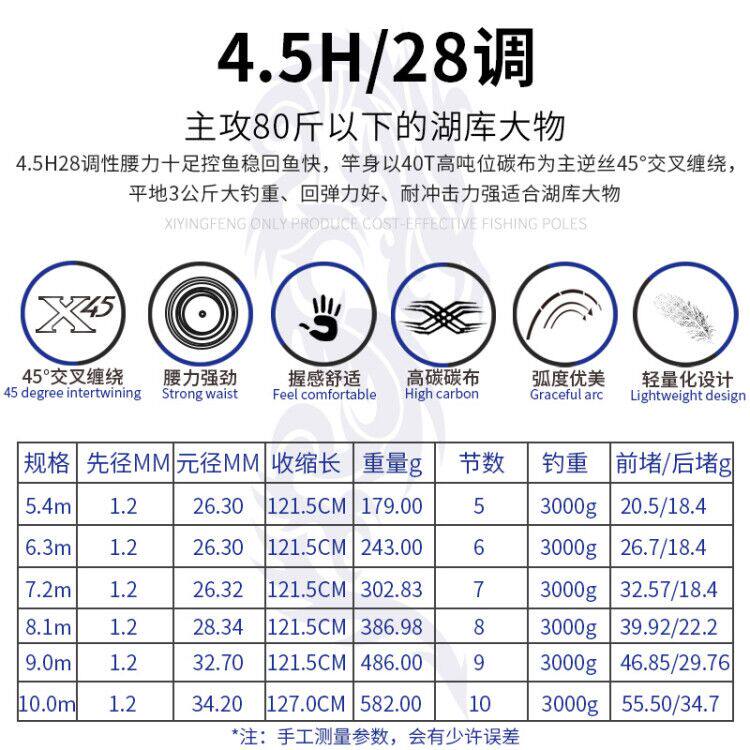 细硬峰 Dragon War Shenhu Library Edition 28 Tune 5,4 метра больших объектов Cymphopia, рыболовная стержня, ультра -светлая супер жесткая рыба