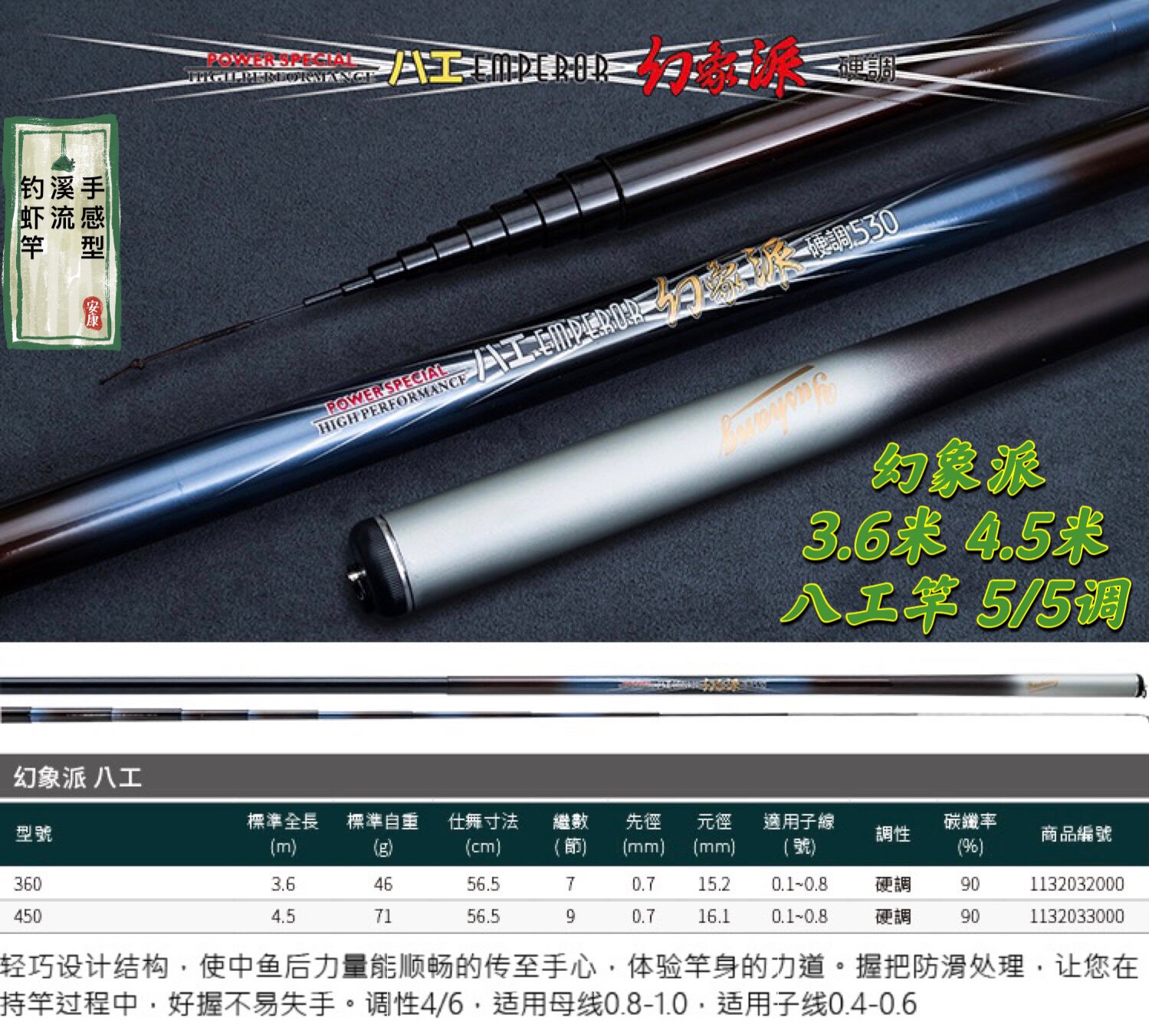 | Цвет: | 3.6м, 3.37м, 4.5м, 4.37м, 3,6 метра стержня и небольшая вертикальная линия поплавок с двойными крючками, 3,6 метра полюса и семизвездочная группа дрейфы содержат двойные крючки, 4,5-метровая стержня и небольшая вертикальная набор линий плавания включают двойные крючки, 4,5-метровая стержня и семизвездная группа поплавок включают двойные крючки |
