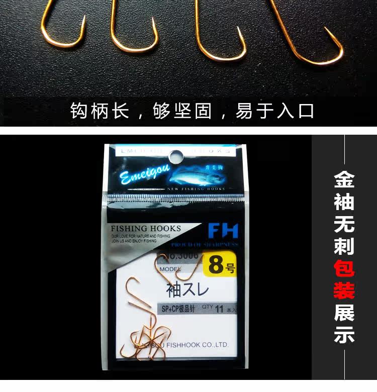 Рыбной крючок с золотистыми рукавами.
