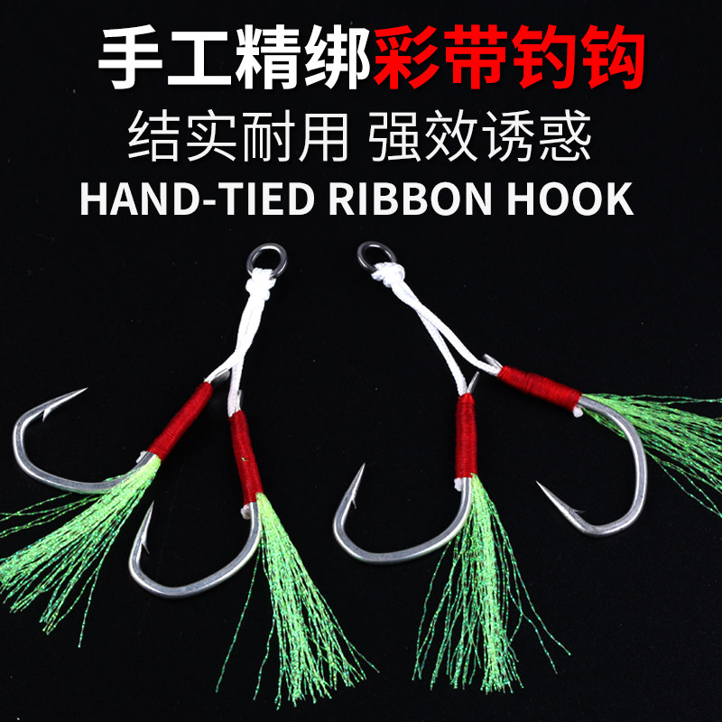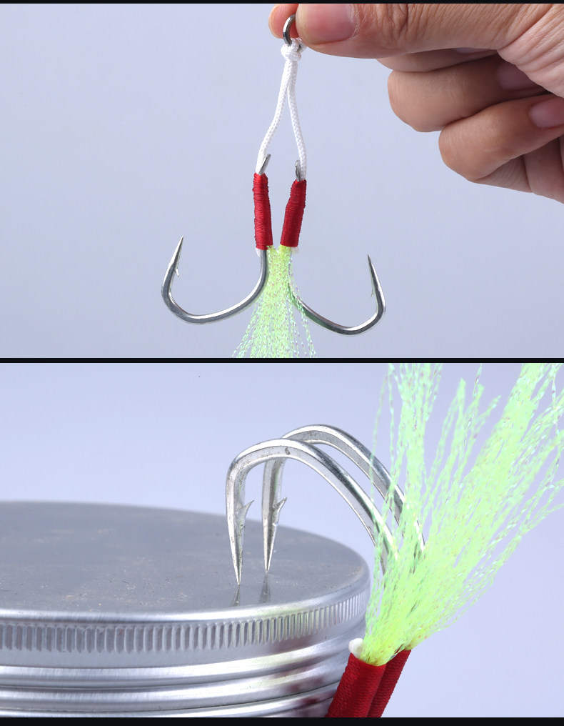 Рыболовный крючок Aojin + леска для завязывания крючков, импортированная из Японии + яркий УФ-шелк, особенностью которого является то, что цвет яркого шелка привлекает внимание в воде при свете.