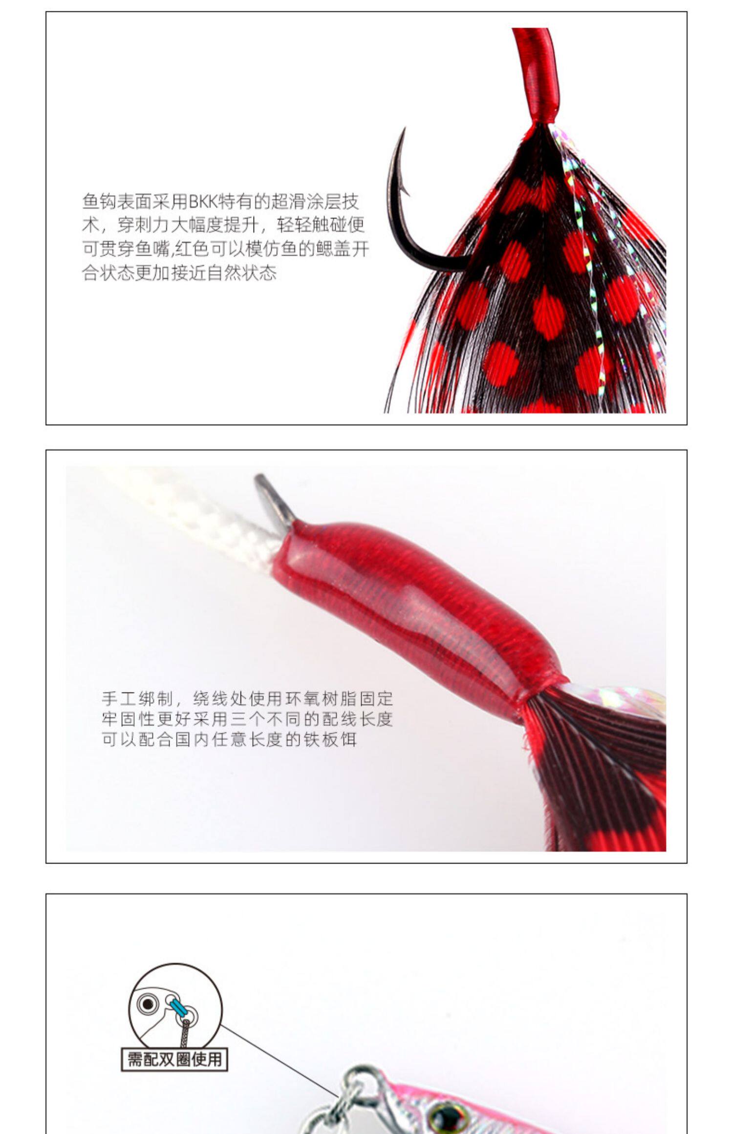 - Красные перья крюк 10# длина линии 8 мм