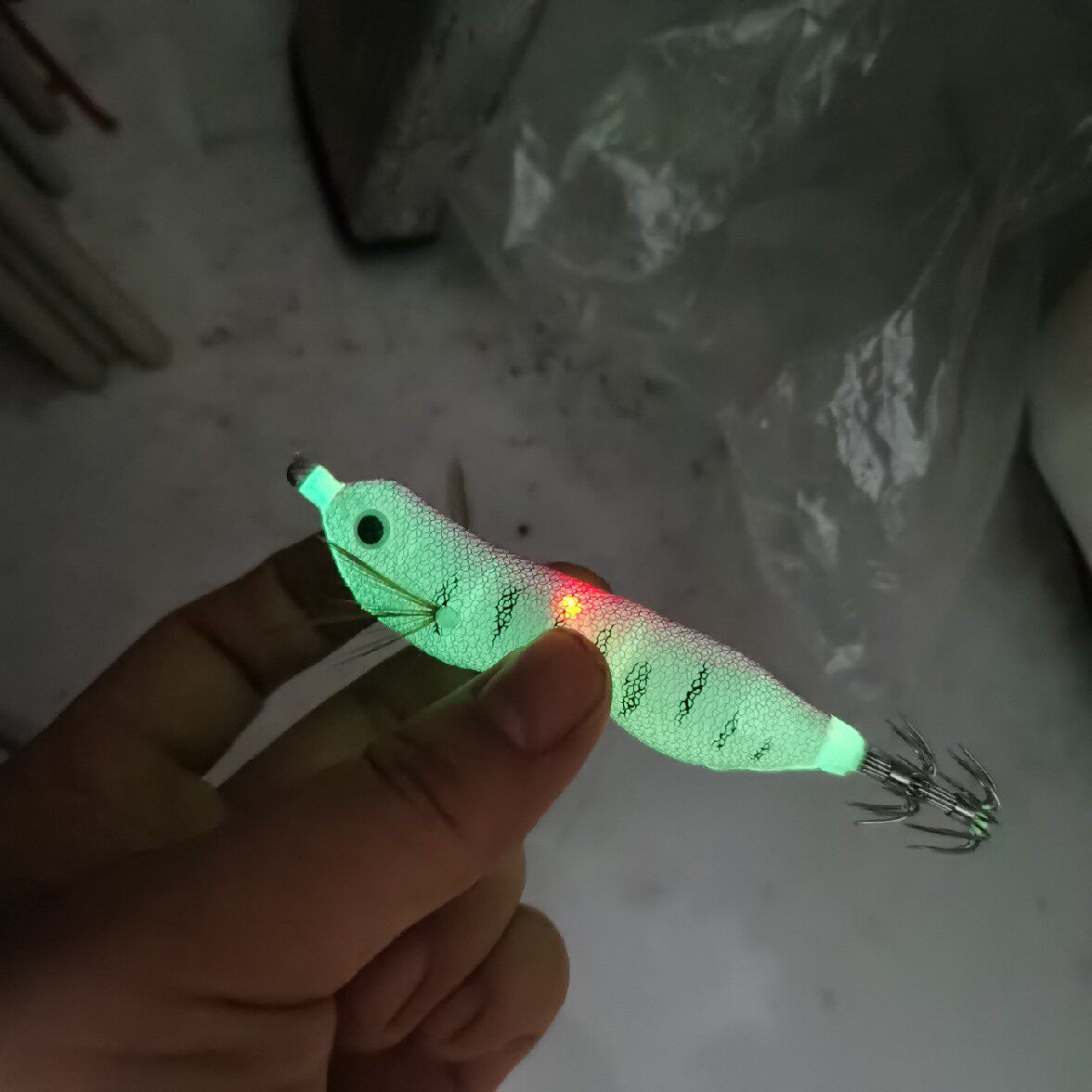 Электронный крюк с кальмаром из деревянных креветков, восемь -коры в воду, свет, светлый цвет, легкий рыб