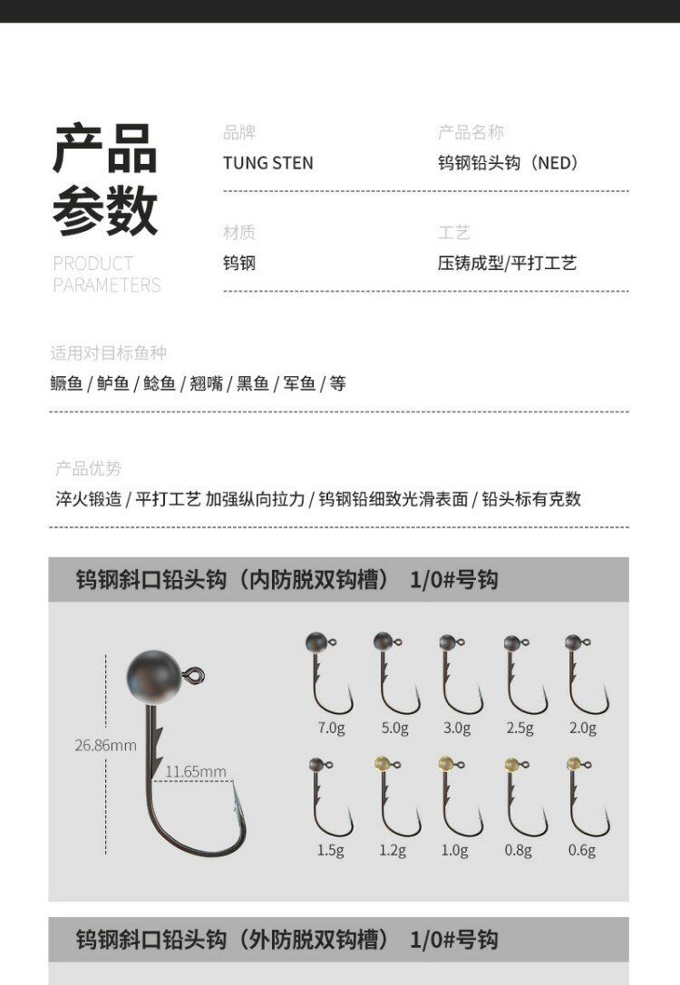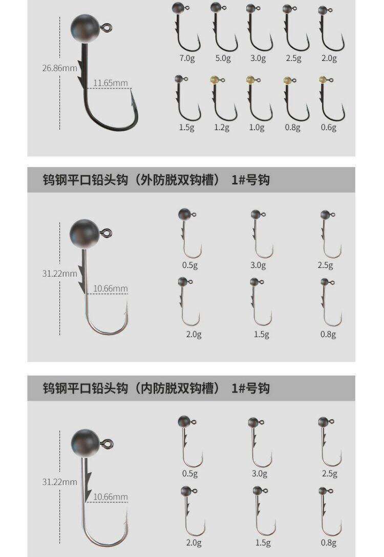 - Вольфрамовая стальная свинцовая головка крючка 2.8G-1-0#