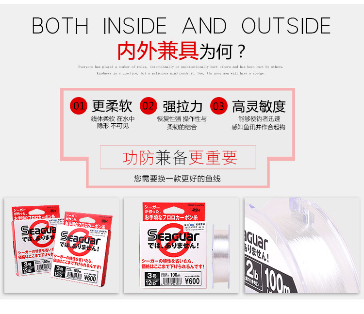 Seuguar Steg Steg Красная и белая коробка углеродная линия фториновой линия углеродная линия 100 м. Рыбацкая линия углеродная линия углеродная плот рыбы основная линия