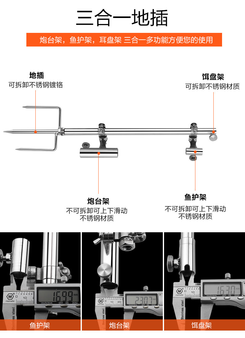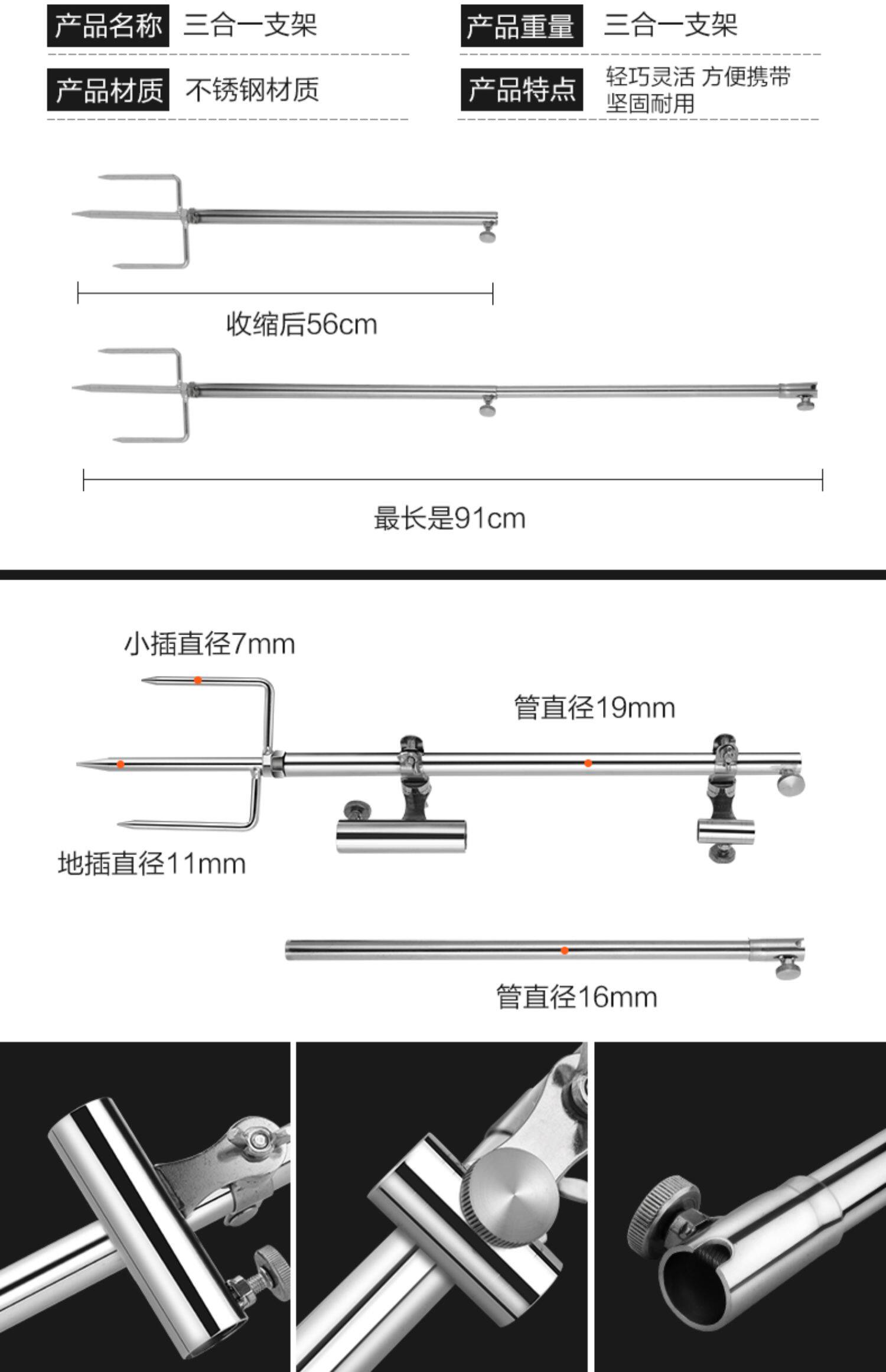 Tab Утолщенный держатель удочки из нержавеющей стали, встроенный в удочку, стойка для удочки «три в одном», стойка для защиты рыбы, стойка для приманки