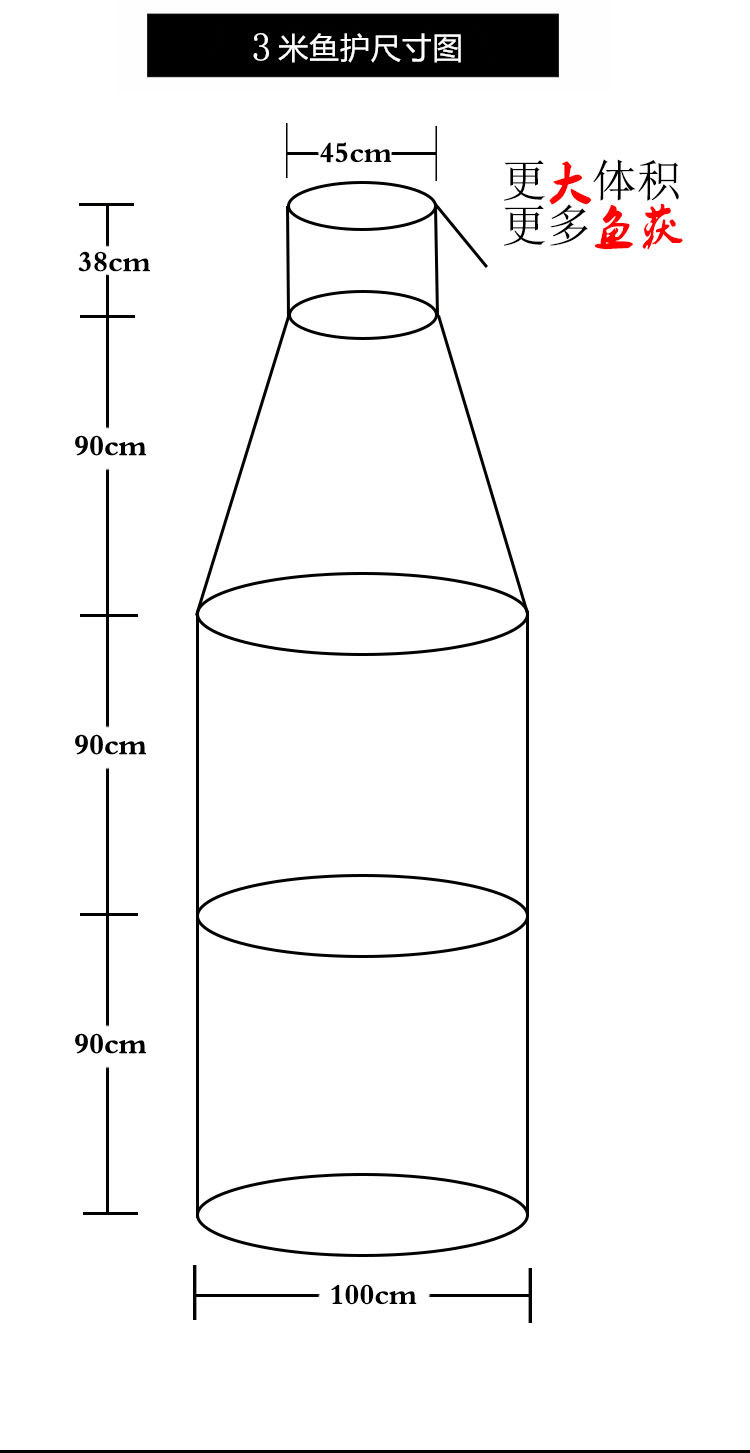 Этот большой уход за рыбой предназначен специально для рыбалки в базах рыбалки.2,5 и 3,5 метра в целом - форма динамика,Нижний диаметр дна составляет 80 см, 3 -метровый игрок является прямым, а нижняя часть дна составляет 1 метр. Большое пространство делает рыбалку с большим пространством активности, что легче выжить;