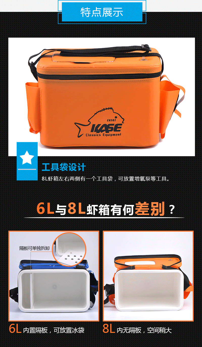Здравствуйте, коробка для креветок имеет две спецификации: 8L и 4L. 8L могут быть размещены примерно в 2 кг живых креветок, 4 л из 1 кг живых креветок и кислородным насосом в этом магазине могут гарантировать, что живые креветки выживают в течение 8-12 часов ПолемЕсли у вас нет кислородных насосов, вы можете купить его в нашем магазине, если вам нужен кислородный насос (Вставка 8L рекомендуется использовать большие кислородные насосы, для использования небольших насосов рекомендуется 4L коробки)