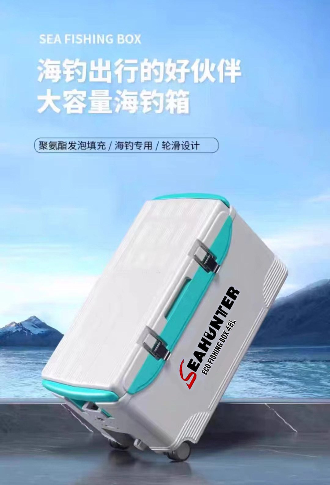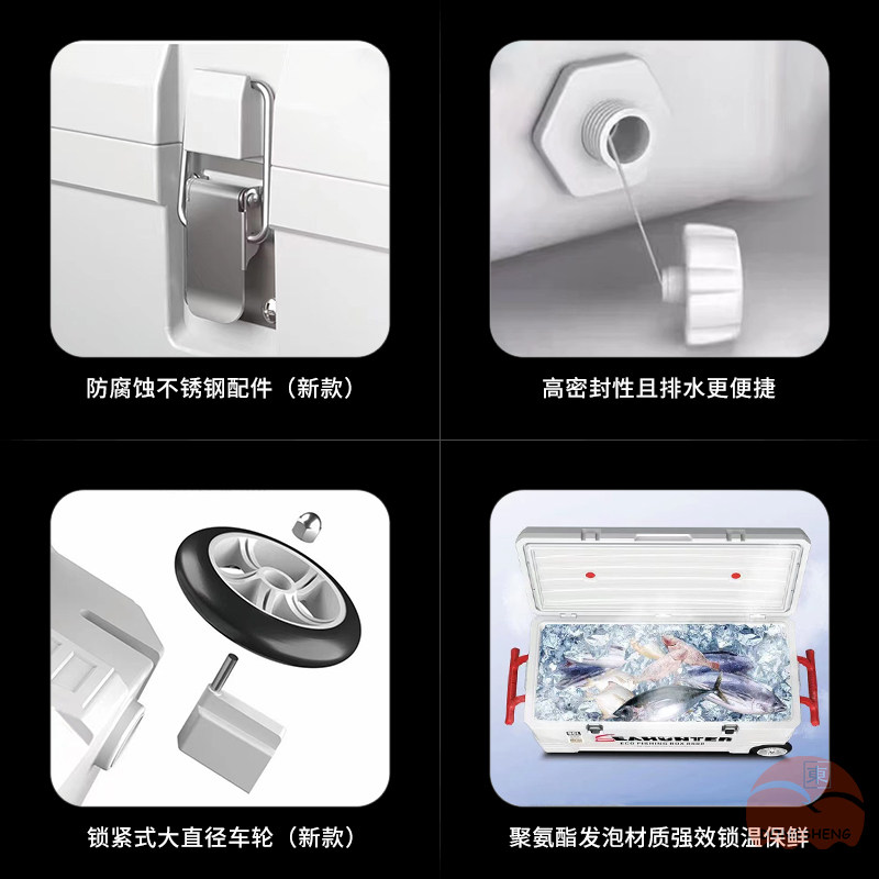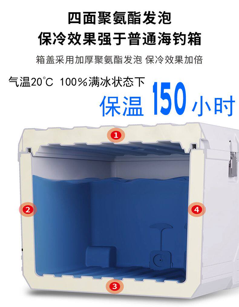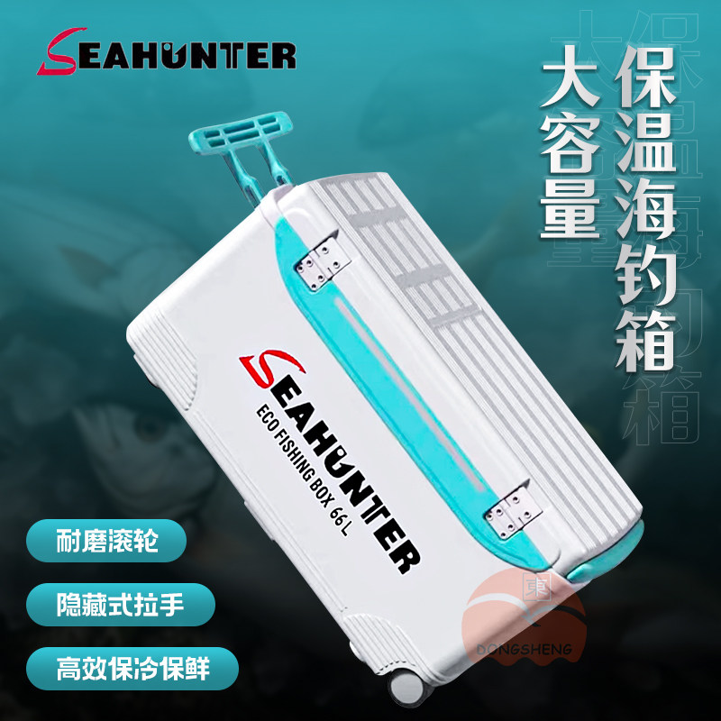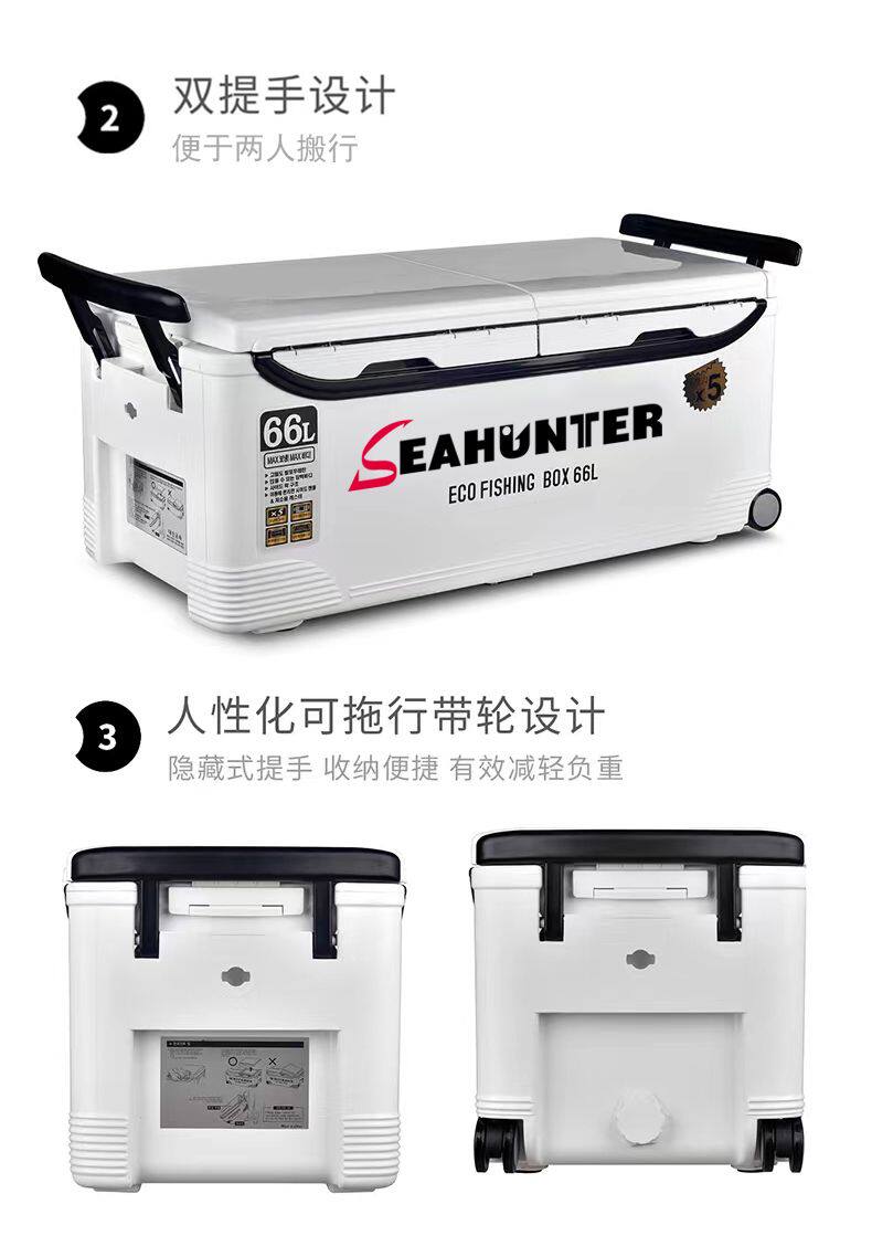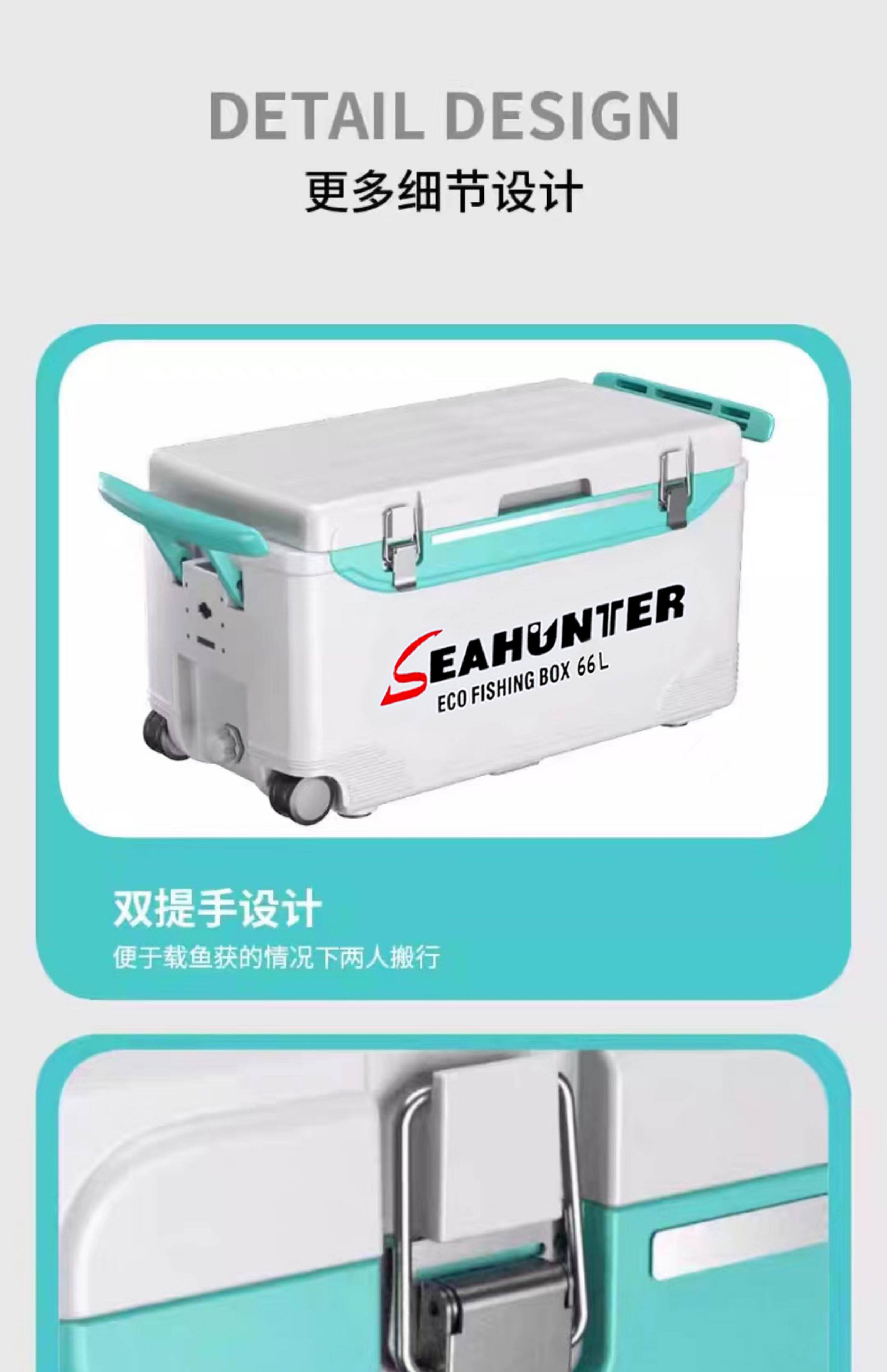 海上猎人 Ящик для рыбалки очень большой вместимости. Ящик для морской рыбалки. Изолированный ящик для морепродуктов. Охлаждаемый ящик для живой рыбы с колесами, 42-60 л.